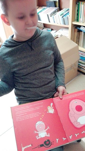 Spotkanie z książką obrazkową odbyło się w październiku 2016r. Udział w literackiej zabawie wzięli uczniowie z oddziału przedszkolnego naszej szkoły. Po długich chwilach spędzonych przy lekturze ciekawych i pięknie wydanych książek, zainspirowani zwłaszcza twórczością Iwony Chmielewskiej, postanowili przystąpić do artystycznego działania. Plamie po żelazku, która stanowi kanwę książki pt. „Kłopot”, dzieci podarowały nowe życie i znaczenie - stworzyły z niej wizerunki ludzi, zwierząt i przedmiotów. Czy wyobraźnia nie jest potęgą? Dzieci udowodniły, że dzięki jej czarodziejskiej mocy świat może stać się piękniejszy, a nasza codzienność ciekawsza i zajmująca.