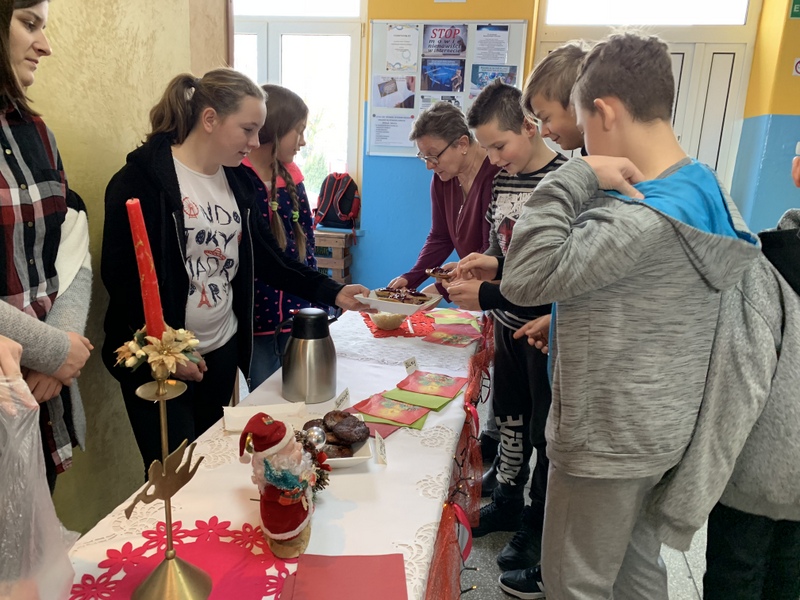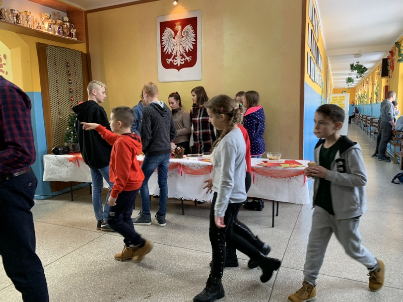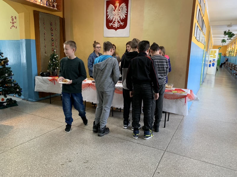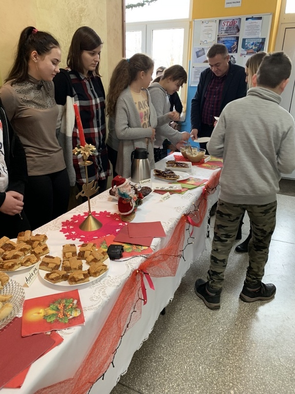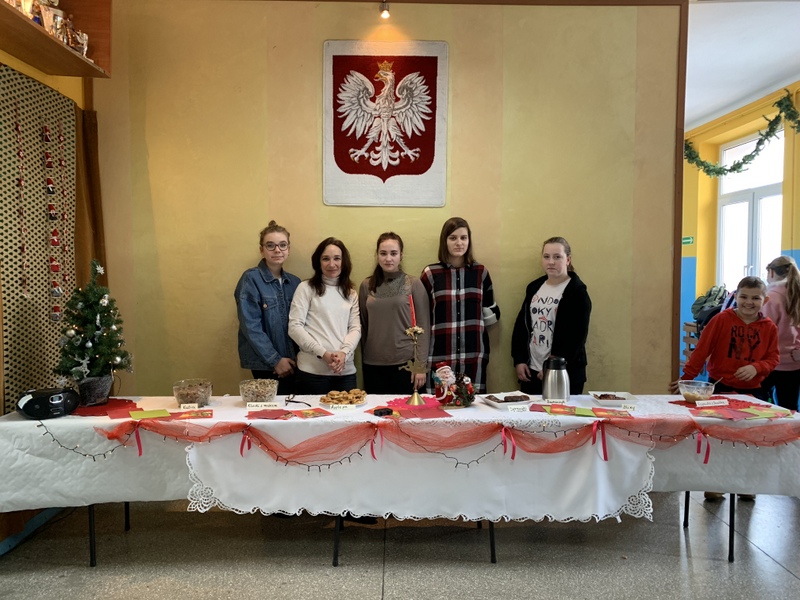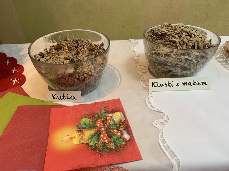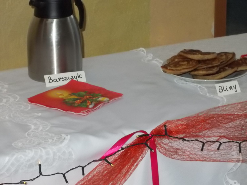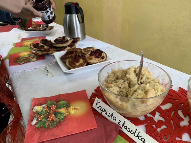 Na stole wigilijnym pojawiły się: kapusta z fasolą, kluski z makiem, kutia, rosyjskie syrniczki, bliny z powidłami, szarlotka amerykańska, rogaliki, czerwony barszczyk. Wszystkie dania zostały wykonane i serwowane przez harcerzy.