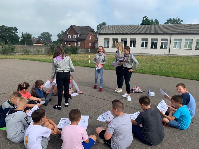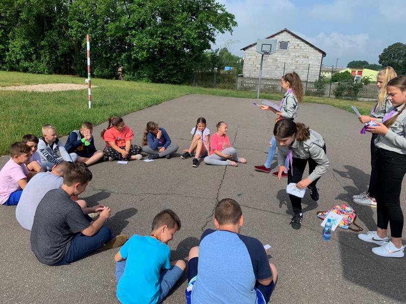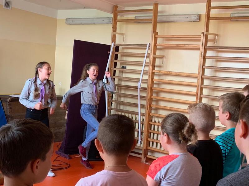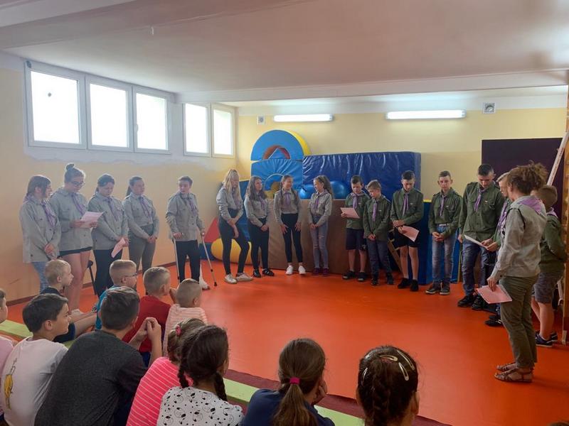 Harcerze, z okazji swojego długo oczekiwanego święta, przygotowali również niespodziankę dla najmłodszych dzieci. Były to m.in.: zagadki, kalambury, szukanie skarbów, pogoń za ,,lisem”, podchody, przekazanie podstawowej wiedzy o harcerstwie oraz wspólne śpiewanie. Wszystkie gry i zabawy sprawiły wielką radość nie tylko maluchom, ale także samym prowadzącym.