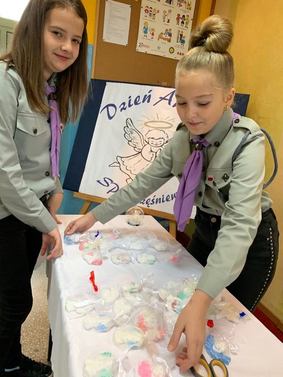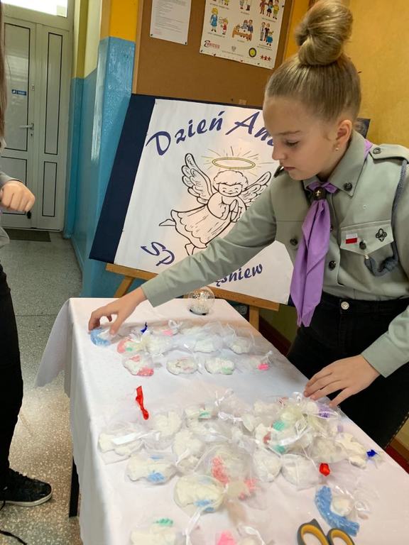 Włączając się w organizowany w szkole Dzień Anioła, drużyna harcerska przygotowała dodatkową atrakcję. Były to wykonane z masy gipsowej aniołki. Jedne z magnesikami, mogą posłużyć jako ozdoba np. na lodówce, drugie z zawieszką, mogą znaleźć swoje miejsce na choince. Jedne pomalowane, inne białe, całym swym czarem wyzwalały osobliwe uczucia.