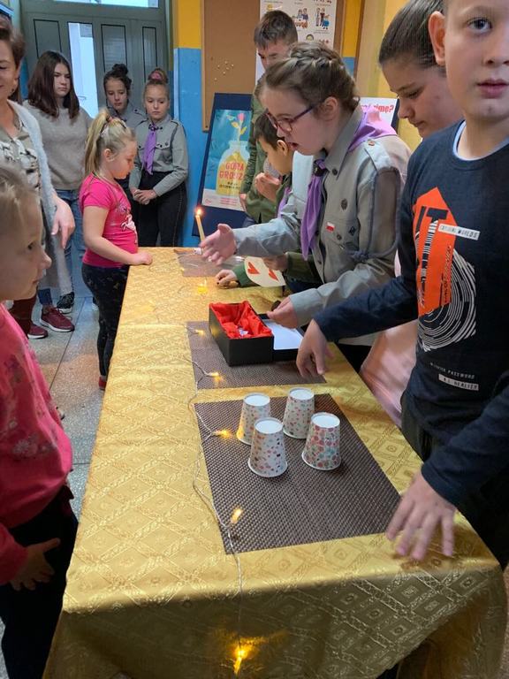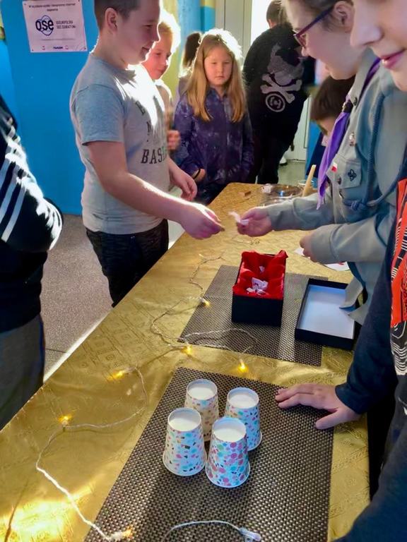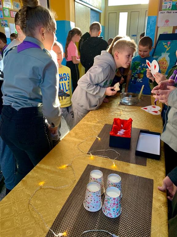 W piątek 29 listopada, jak tradycja nakazuje, nie mogło się obyć w naszej szkole bez wróżb andrzejkowych. Nasz koordynator do spraw realizacji programu, wyszukał najciekawsze wróżby i zaczęła się realizacja. Podzieleni na grupy harcerze byli odpowiedzialni za ich przygotowanie i przeprowadzenie w czasie trwania przerw lekcyjnych. Myślę, że wszyscy dobrze się bawili, a wróżby zostały potraktowane z przymrużeniem oka.