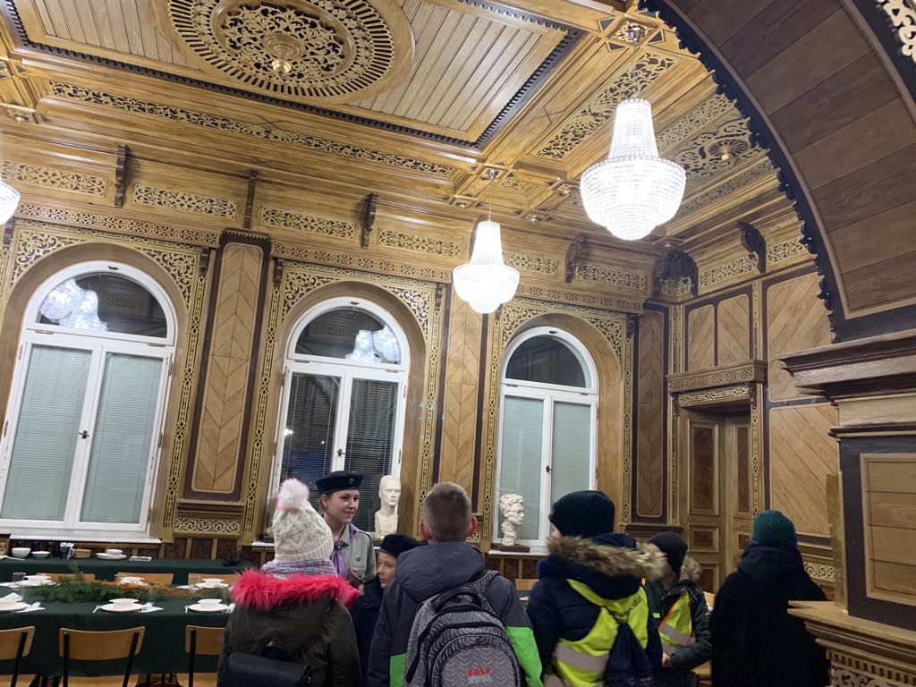 Inspirowani atmosferą świąt, 17 grudnia wybraliśmy się na koncert bożonarodzeniowy, który odbywał się w Państwowym Liceum Sztuk Plastycznych w Kościelcu. Była to niepowtarzalna okazja, aby w świątecznej odsłonie móc zobaczyć od wewnątrz przepiękny, monumentalny pałac z XIX wieku, w którym mieści się szkoła. Pokonując trasę pieszo uczestnicy mieli okazję uzyskać kolejną sprawność harcerską. Gratuluję wytrwałości.