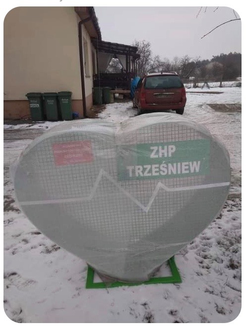 Montażem serduszka przed szkołą zajął się oczywiście nasz niezastąpiony Pan Józek, a zdjęcia udostępniła Pani Magda i Filip oraz producent serduszka.