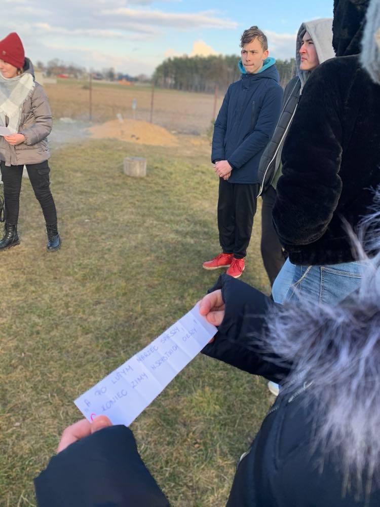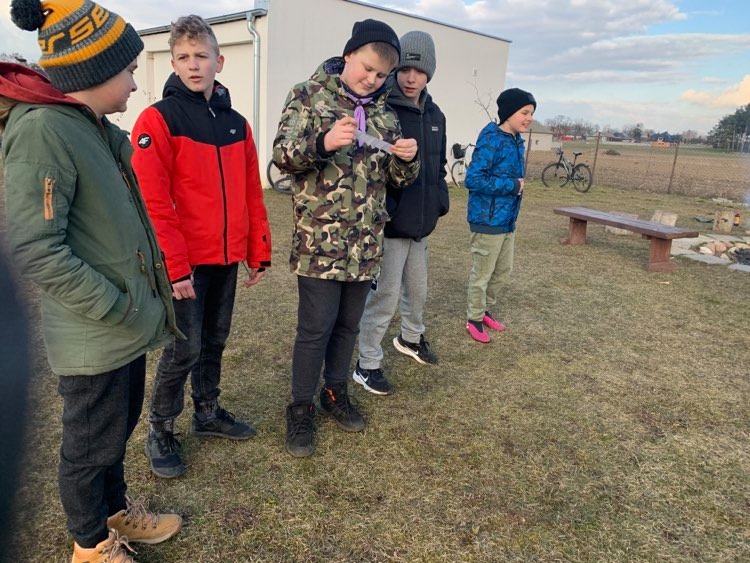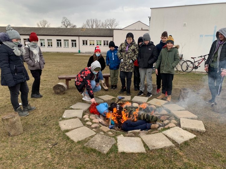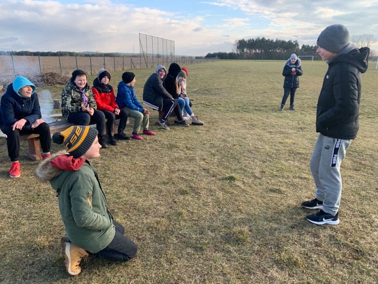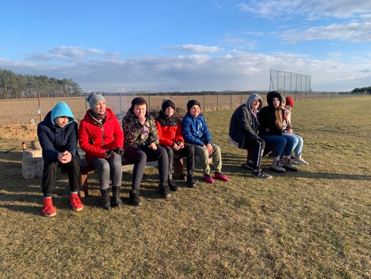 Pierwszy Dzień Wiosny był okazją do zorganizowania zbiórki na świeżym powietrzu. Każdy zastęp przygotował swoją Marzannę. Po uroczystym powitaniu spaliliśmy Marzanny, które są symbolem zimy z nadzieją na pojawienie się cieplejszych, słonecznych dni. Harcerze przygotowali różne zabawy, które umiliły nam czas. Odbył się krótki mecz piłki nożnej, losowaliśmy nazwiska nauczycieli i gestami musieliśmy pokazać ich sylwetkę, był głuchy telefon, skoki nad przeszkodą oraz przechodzenie pod niską poprzeczką, a pieczenie kiełbasek nad ogniskiem to już nasza codzienność. Spotkanie upłynęło w atmosferze radości. Zadowoleni i uśmiechnięci przeżywaliśmy nasze spotkanie, wspominaliśmy i planowaliśmy naszą dalszą pracę w drużynie. Trudno było się rozstać, tym bardziej, że powracały obostrzenia związane z rozwojem pandemii.