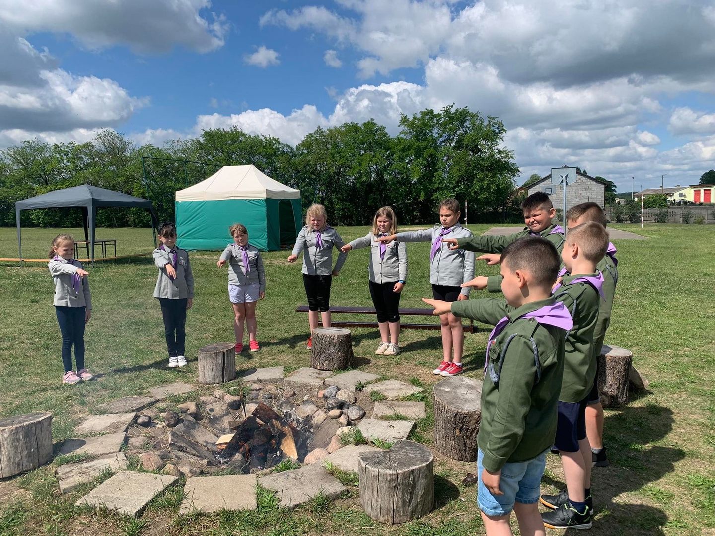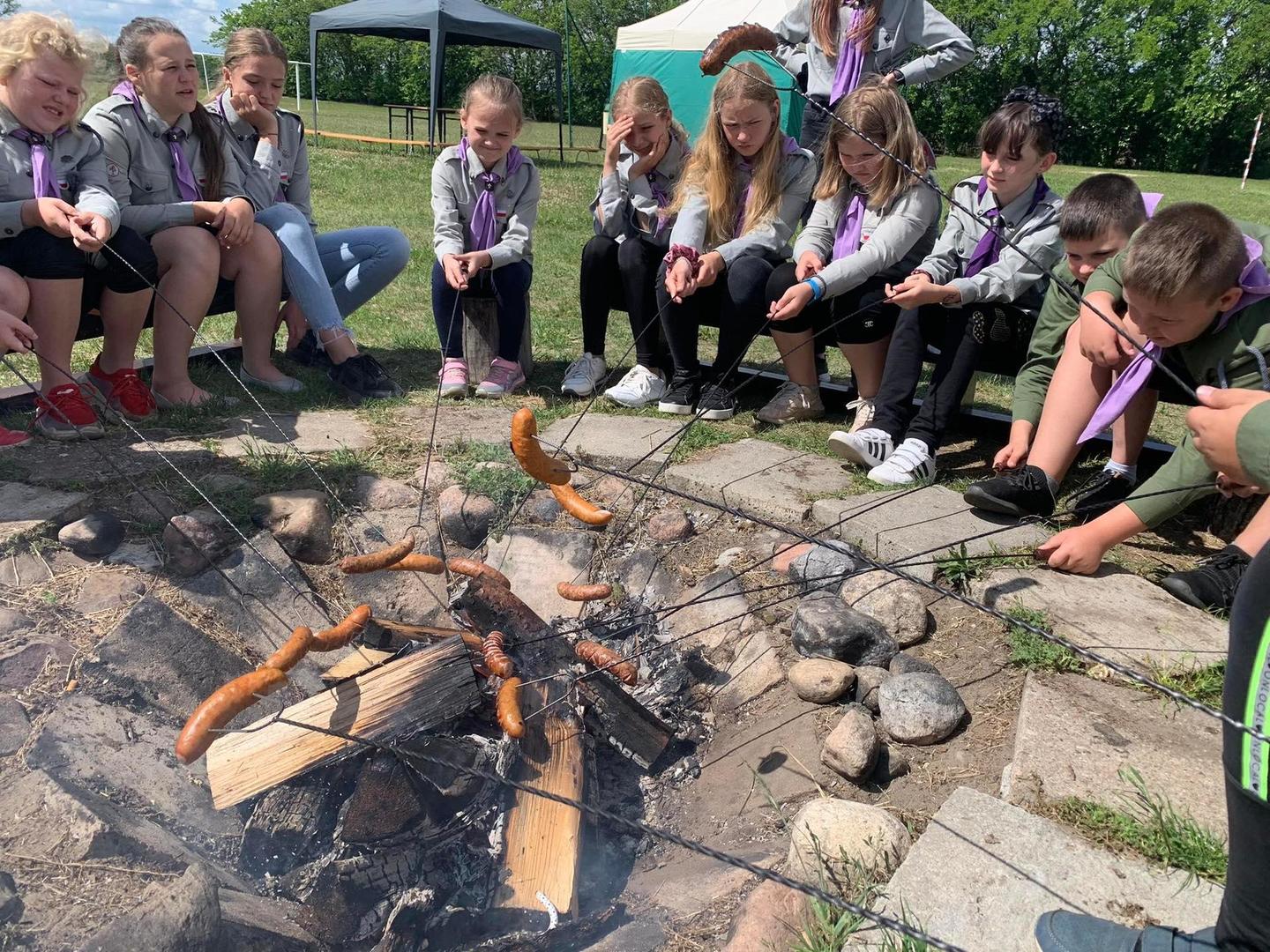 Na zakończenie roku szkolnego postanowiliśmy zorganizować spotkanie w namiotach. Nasi najmłodsi członkowie drużyny złożyli przyrzeczenie harcerskie. Zastępowi przygotowali szereg niespodzianek, zabaw i konkurencji. Było również pieczenie kiełbasek, lody i pizza. Uczyliśmy się rozkładać namioty i poznawaliśmy zwyczaje panujące na obozie czy biwaku. Był to rok pracowity, wypełniony akcjami zbiórki pieniędzy na rzecz naszego kolegi-ucznia, dzielnie zmagającego się z chorobą nowotworową, rok, w którym aktywnie braliśmy udział w projektach i konkursach. Włączyliśmy się również w zbiórkę aluminium dla młodzieży OSP, która zbiera fundusze na zakup strojów. Żegnamy nasze koleżanki Karolinę, Aleksandrę i Helenkę, które kończąc 8 klasę, opuszczają szeregi naszej drużyny. Dziękujemy Pani Magdalenie Suskiej, która zawsze niosła nam pomoc i wspierała dobrym słowem.
