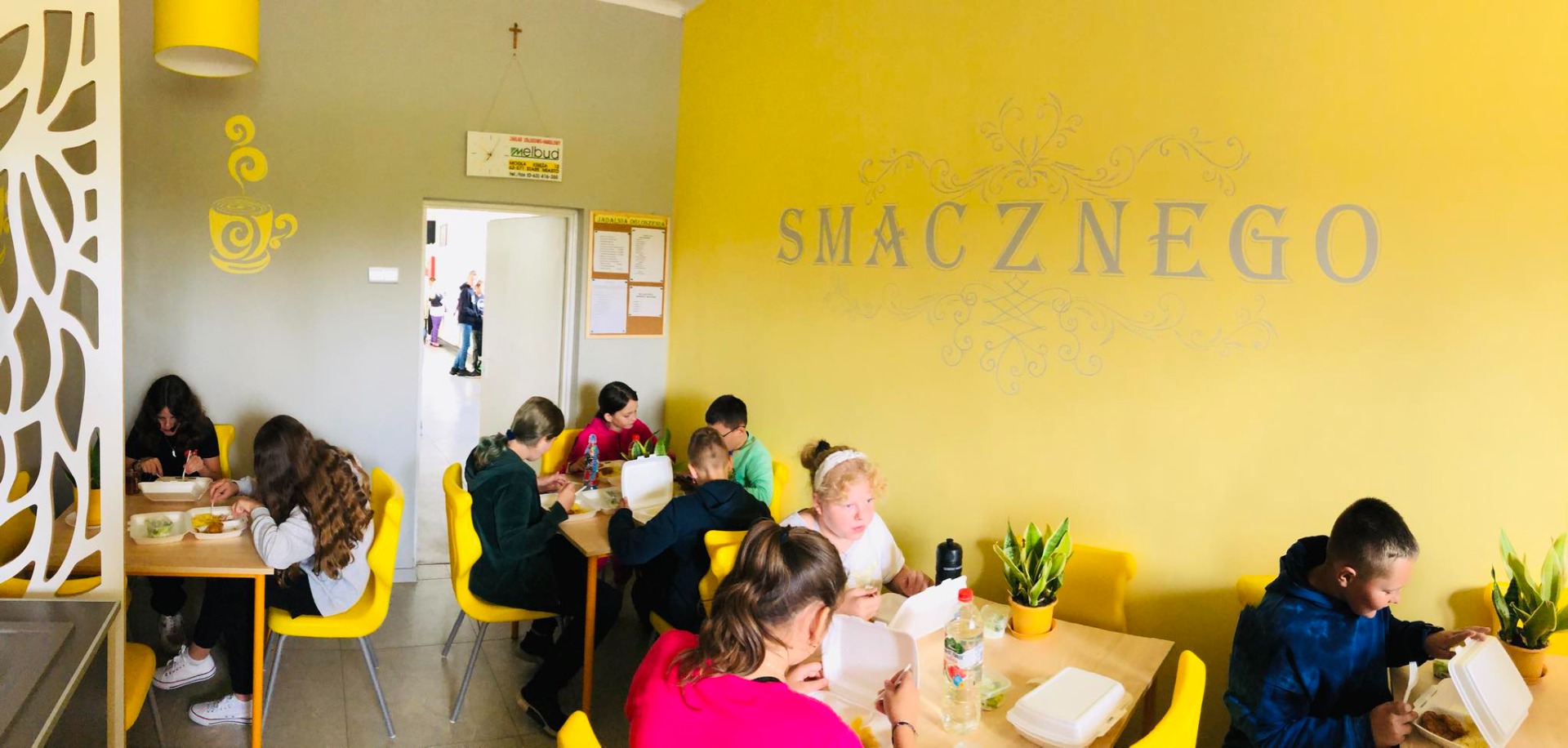 Szkoła Podstawowa w Trzęśniewie wzięła udział w Wieloletnim Rządowym Programie „Ciepły posiłek w szkole i w domu” na lata 2019-2023. Został napisany przez naszą placówkę wniosek, który organ prowadzący, czyli Gmina Kościelec, złożył do Kuratorium Oświaty w Poznaniu w terminie do 30 kwietnia 2023 r. Otrzymaliśmy wsparcie dla szkoły. Celem Programu jest między innymi wzmocnienie opiekuńczej funkcji szkoły podstawowej poprzez tworzenie warunków umożliwiających spożywanie przez uczniów posiłku w trakcie pobytu w szkole. Koordynatorem modułu 3 Programu na szczeblu administracji rządowej jest minister właściwy do spraw oświaty i wychowania. W naszej placówce zostało zaadaptowane jedno z pomieszczeń na potrzeby stworzenia szkolnej jadalni. Wyrównano ściany, położono płytki na ścianach i podłodze, stworzone nowe punkty elektryczne, kanalizacyjne i wodne. Zakupiliśmy niezbędne szafki, stoliki i krzesła oraz sprzęty kuchenne (kuchnia indukcyjna, zmywarko-wyparzarka, szafa chłodnicza, zlewozmywak i umywalka). Pomieszczenie zachęca swoim nowym wyglądem do odwiedzania w celu spożywania posiłku. Całkowity koszt stworzenia jadalni to 30 400 złotych (20 % to wkład własny Gminy Kościelec).