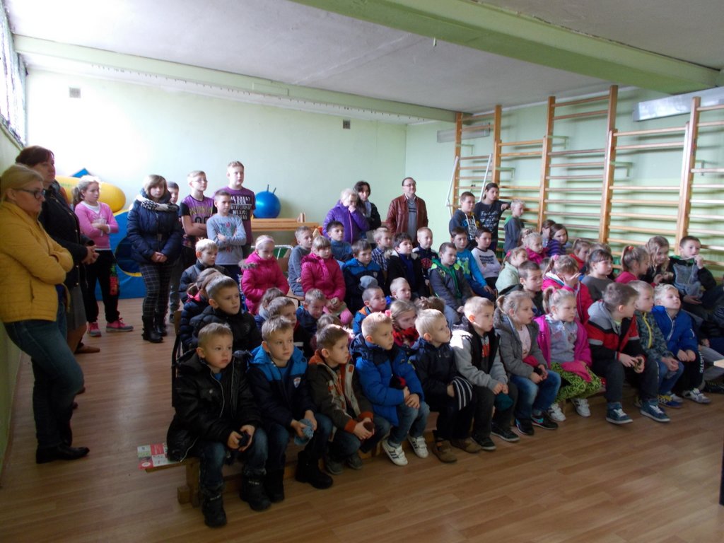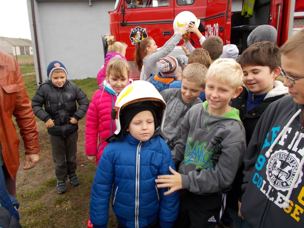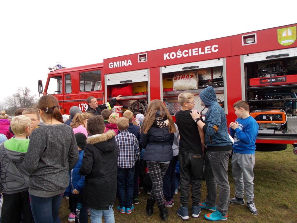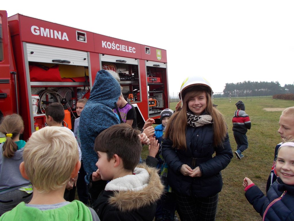 W ramach realizacji programu „Zgaś ryzyko” w dniu 13.11.2015 r. przybyli do naszej szkoły strażacy z jednostki Państwowej Straży Pożarnej w Kole. Zaprezentowali uczniom film, mający na celu zaznajomienie ze sposobami zapobiegania powstawania pożarów w gospodarstwach domowych. Przeprowadzili pogadankę na temat zagrożenia zatrucia się dymem i czadem. Przedstawili czujniki reagujące na obecność dymu lub czadu w pomieszczeniach mieszkalnych. Poruszyli temat bezpieczeństwa podczas zbliżających się ferii świątecznych i zimowych. Dzieci bardzo chętnie brały udział w rozmowie ze strażakami. Zadawały wiele pytań dotyczących spotkania. Na koniec pan Mirosław Rossa, pracownik PSP w Kole, zaprezentował niedawno zakupiony dla OSP Trzęśniew duży wóz strażacki. Opowiedział o możliwościach zastosowania wyposażenia pojazdu podczas akcji pożarniczej, wypadków drogowych i innych niebezpiecznych zdarzeń.