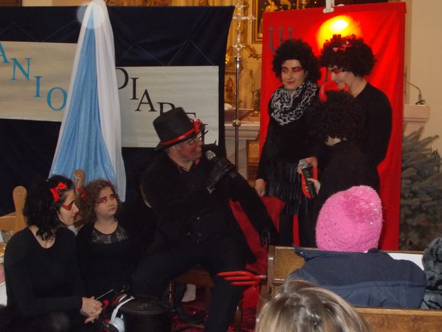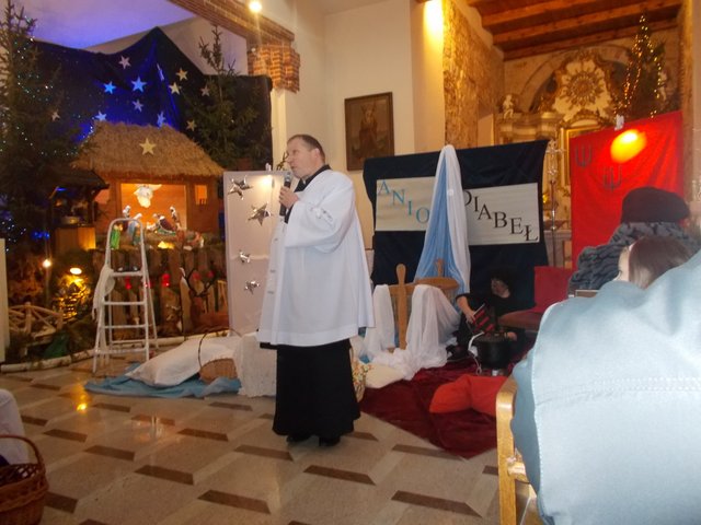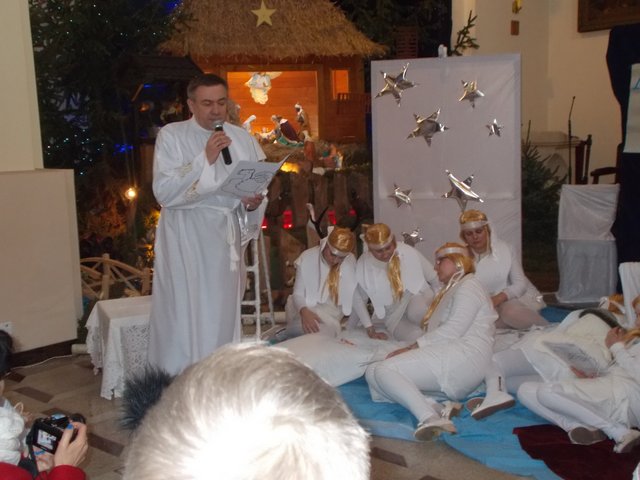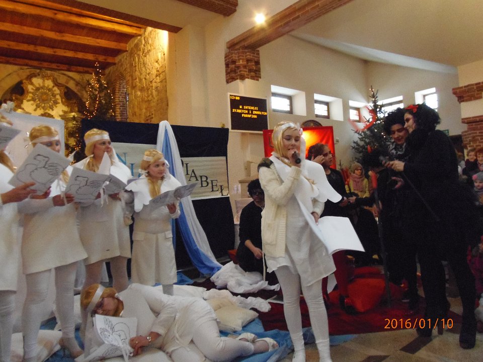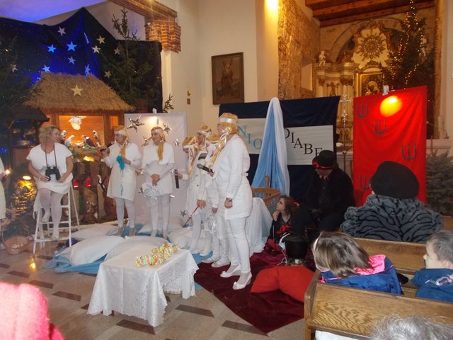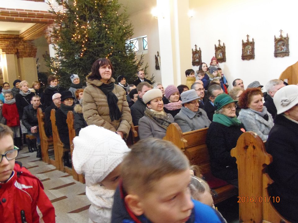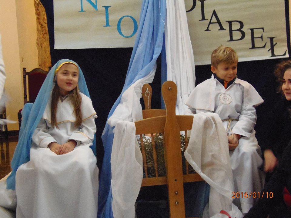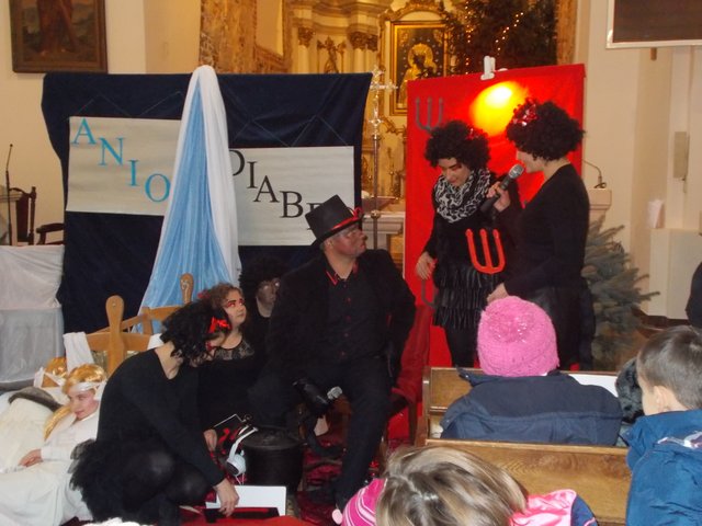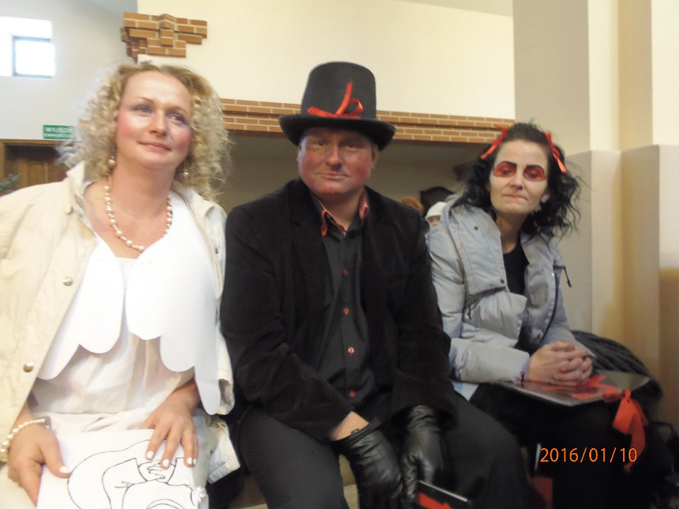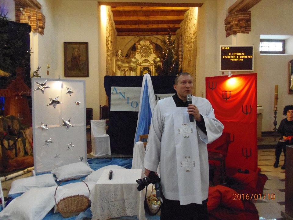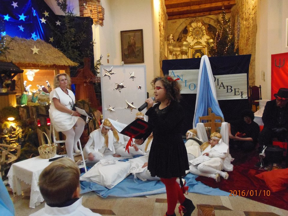 Na prośbę księdza proboszcza naszej parafii Tomasza Jenera KLUBIK TEATRALNY w dniu 10.01.2016 r., przed mszą świętą o godzinie 12:00, wystawił przedstawienie bożonarodzeniowe „Jeden do zera”. Dzień wcześniej w kościele odbyła się próba. W niedzielę przed występem ks. Proboszcz zaprosił aktorów do plebanii, aby tam mogli przygotować się do spektaklu i ogrzać przy ciepłej herbacie. „Bóg zapłać” naszym duszpasterzom za miłe przyjęcie. Członkowie koła teatralnego /rodzice, nauczyciele, dyrektor i uczniowie/ byli bardzo stremowani, ale emocje szybko opadły, gdy zostali nagrodzeni za występ dużymi brawami. Wielu widzów podchodziło do aktorów dziękując za piękne wrażenia, które dostarczył spektakl. Dziękujemy pani Magdalenie Pasternak za przygotowanie makijażu występującym.