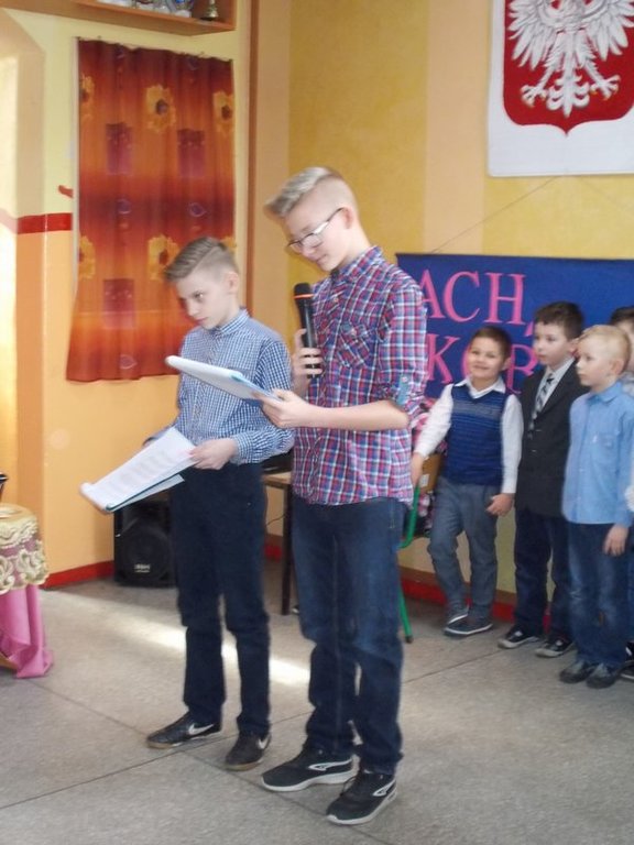 8 marca świętowaliśmy w naszej szkole Dzień Kobiet. Z tej okazji odbył się uroczysty apel, na którym głównie występowali chłopcy zarówno z klas młodszych jak i starszych .A niektóre dziewczynki były pięknym dodatkiem do występu. Młodzi artyści z klas 0 –III zaprezentowali swoje umiejętności recytatorskie i wokalne ( Eryk z klasy II). Starsi uczniowie pokazali się w humorystycznych scenkach, a także w poważnych monologach . Wróżka Emily , która już po raz drugi zaszczyciła nas swoją obecnością ,umożliwiła niektórym paniom poznanie samych siebie. Nad całością uroczystości czuwali chłopcy z klasy VI - Sebastian , Patryk , Kacper i Bartek , którzy w znakomity sposób poradzili sobie z wyzwaniem. Na zakończenie apelu, przy akompaniamencie piosenki ,,Sto lat’, popłynęła moc gorących życzeń , a także zostały wręczone paniom kwiaty, a koleżankom słodkie upominki. Te miłe gesty wywołały duży uśmiech na twarzach wszystkich kobiet .