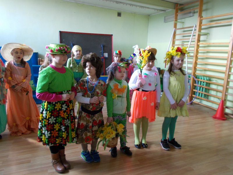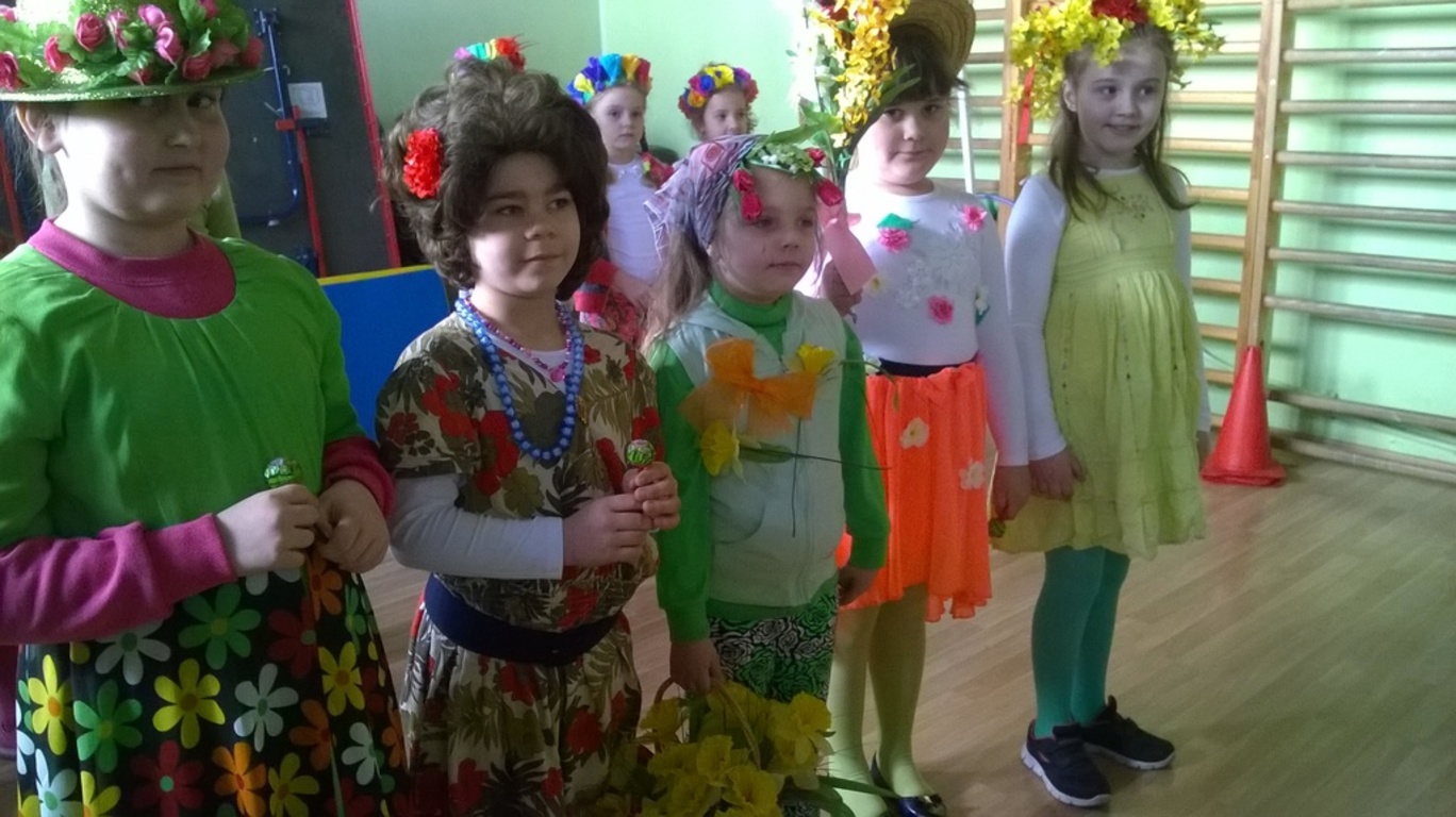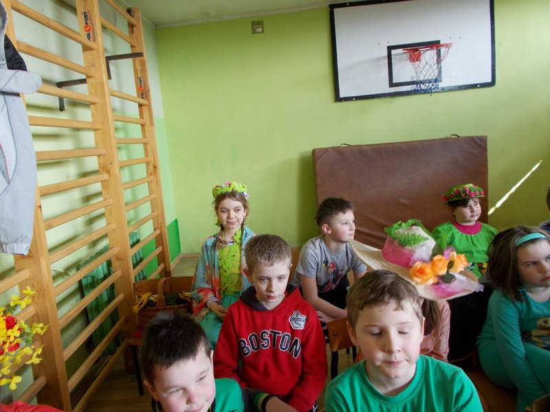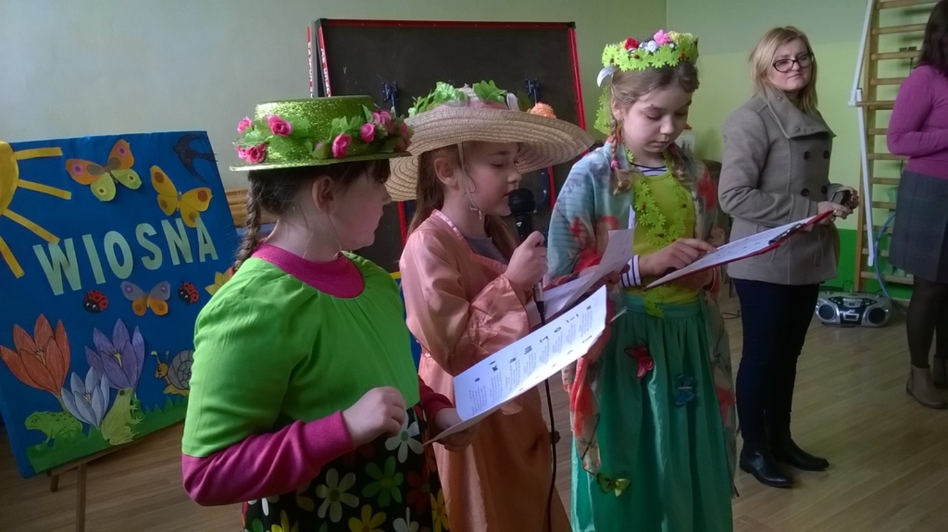 W dniu 21 marca 2016 r. w naszej szkole powitaliśmy wiosnę. Uczniowie z klas O-III przygotowali krótką część artystyczną składającą się z wierszy i piosenek o tematyce wiosennej. Wybieraliśmy również najładniejszą „Panią Wiosnę”, za którą przebrali się nasi uczniowie. W czasie uroczystości dzieci wzięły udział w wielu konkursach i zabawach sportowych. Na koniec spotkania dzieci wykonały pracę plastyczną pt. „Pani Wiosna”. Wytwory uczniów zostały wystawione na korytarzu.