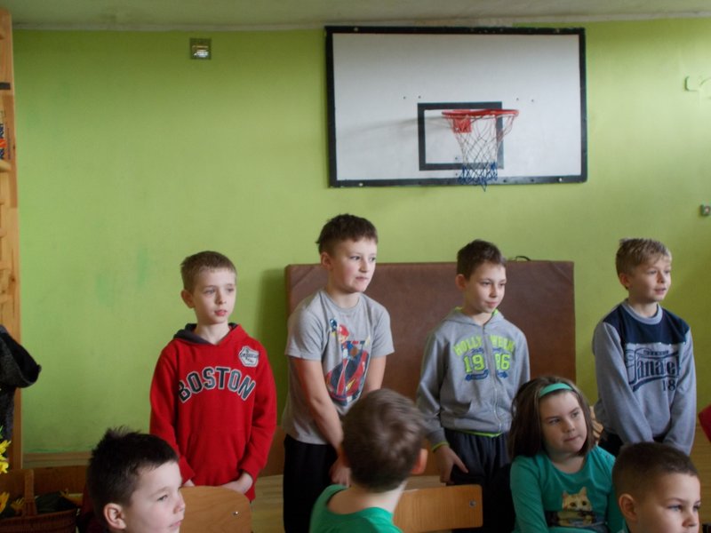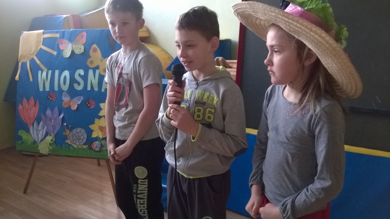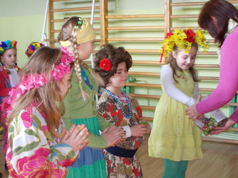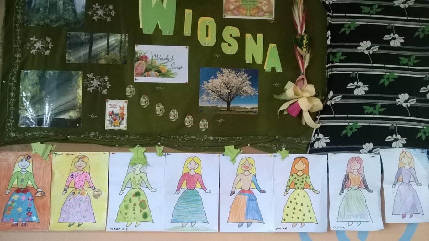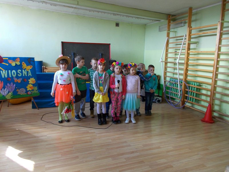 W dniu 21 marca 2016 r. w naszej szkole powitaliśmy wiosnę. Uczniowie z klas O-III przygotowali krótką część artystyczną składającą się z wierszy i piosenek o tematyce wiosennej. Wybieraliśmy również najładniejszą „Panią Wiosnę”, za którą przebrali się nasi uczniowie. W czasie uroczystości dzieci wzięły udział w wielu konkursach i zabawach sportowych. Na koniec spotkania dzieci wykonały pracę plastyczną pt. „Pani Wiosna”. Wytwory uczniów zostały wystawione na korytarzu.