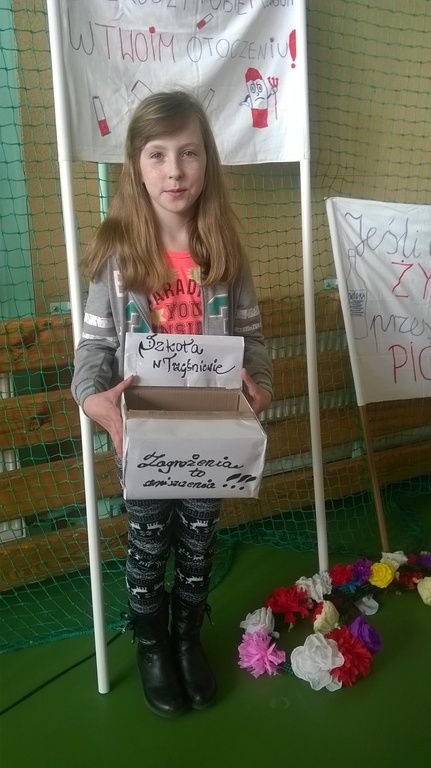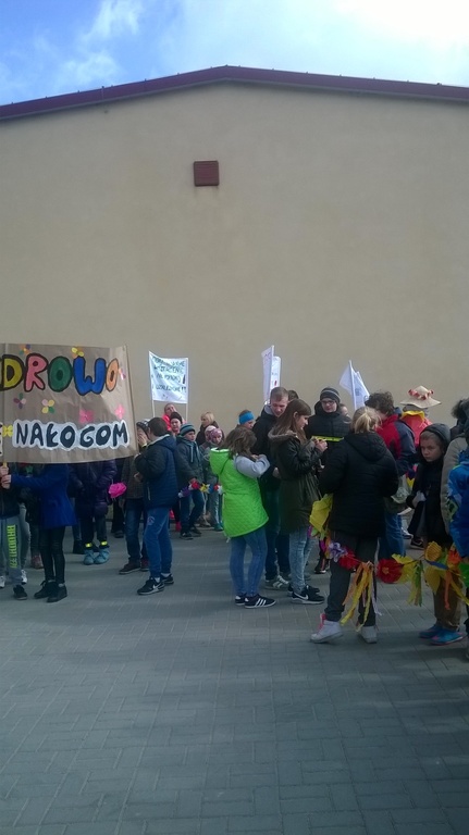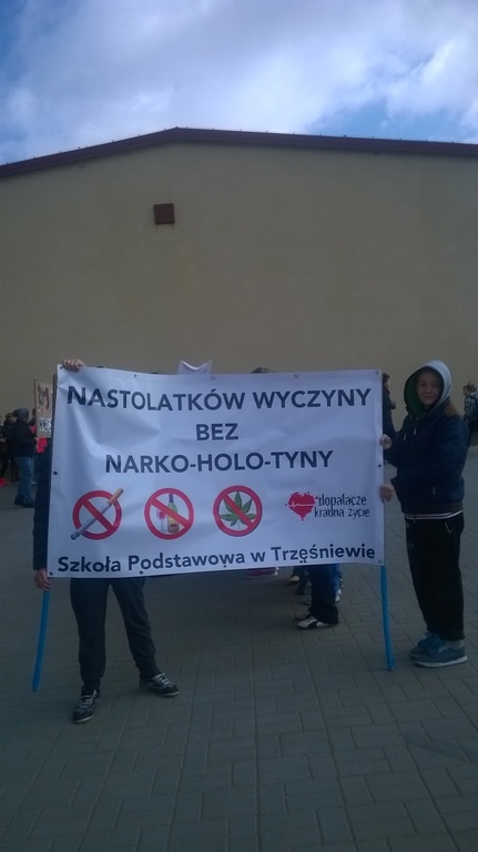 Gościem specjalnym była aspirant policji, pani Anna Drynkowska, która przedstawiła prelekcję dotyczącą zagrożeń współczesnego świata. Każdy uczestnik spotkania otrzymał odblask przypominający o zagrożeniach. Impreza zakończyła się pochodem ulicami Kościelca, podczas którego uczniowie prezentowali transparenty (nasz był bardzo wymowny i profesjonalny) mówiące o szkodliwości używek oraz rozdawali wcześniej przygotowane ulotki. Zaprezentowaliśmy się godnie, co pragnę podkreślić z całą stanowczością.