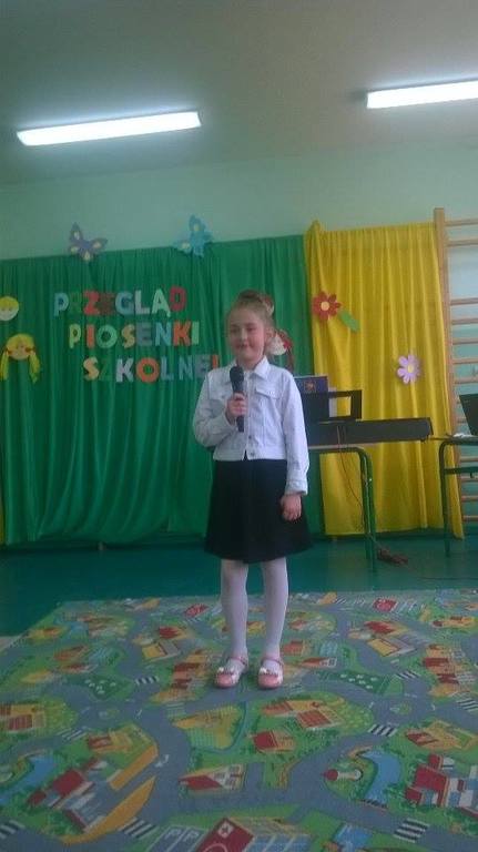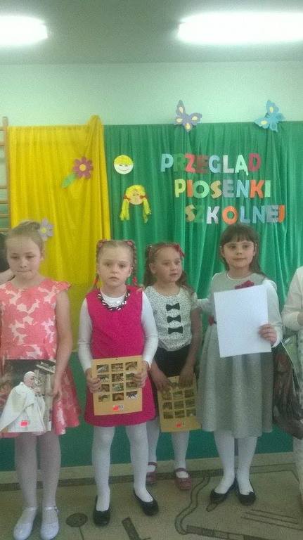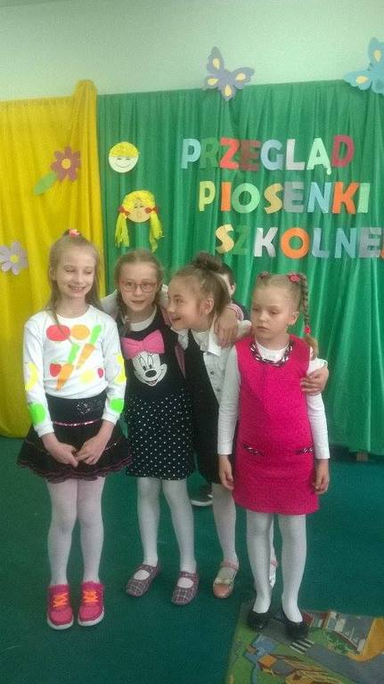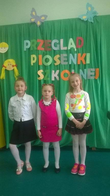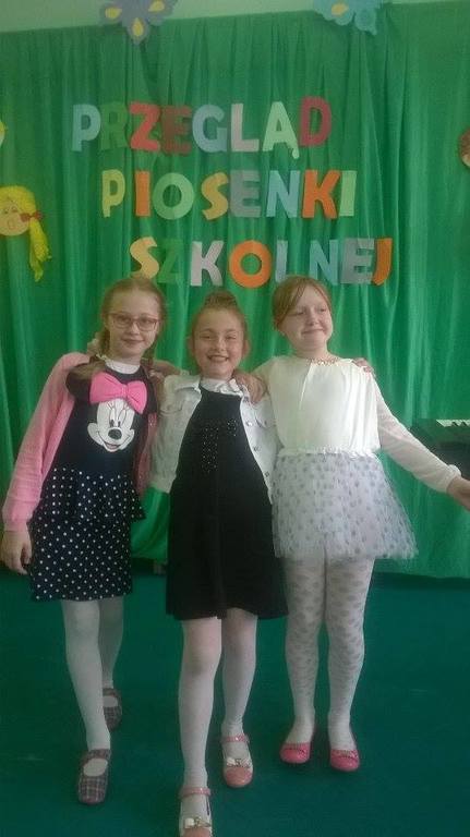 W piątek, 22 kwietnia 2016 , dziewczynki z klas I , II i III wzięły udział w Przeglądzie Piosenki Szkolnej, który odbył się w Zespole Szkół w Kościelcu. Jesteśmy dumni z naszych uczennic , gdyż poradziły sobie doskonale z wyzwaniem. Olga Perek z klasy III oraz Oliwia Czupryńska z klasy II otrzymały wyróżnienie w postaci pamiątkowych dyplomów , natomiast Marika Cicha, pomimo choroby, zaprezentowała się równie dobrze. Gratulujemy Oldze i Oliwce wyróżnień, a Marice odwagi i wytrwałości w dążeniu do celu. Do konkursu uczennice przygotowały panie ; Aleksandra Cicha , Iwona Brudnicka i Izabela Góralska , którym serdecznie dziękujemy za włożony trud i gratulujemy tak pojętych uczennic.