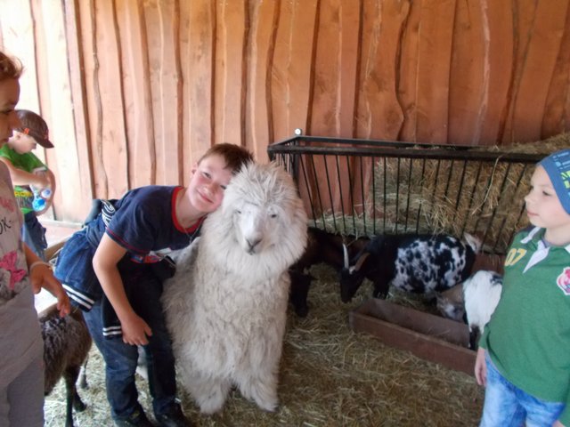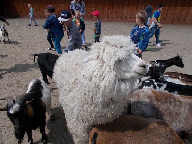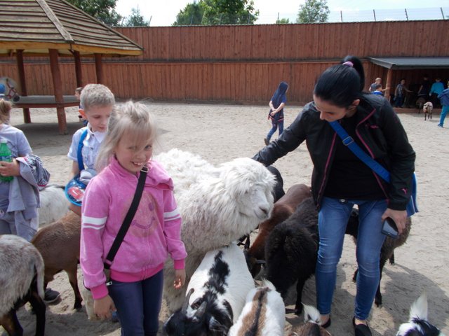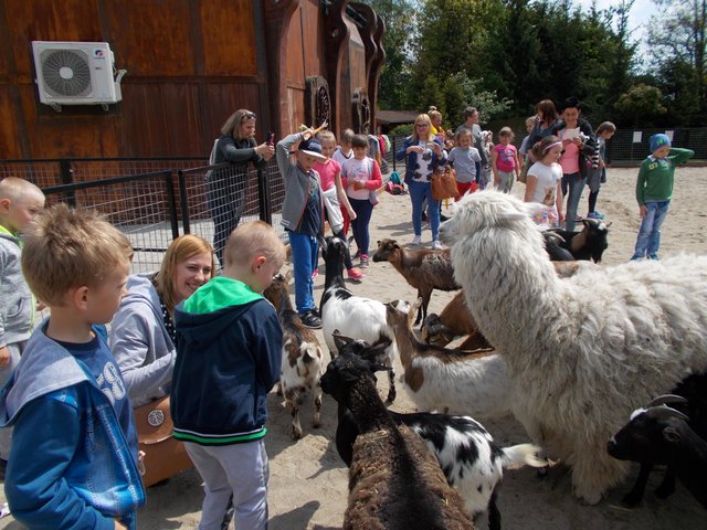 Już przed wejściem dzieci zostały powitane przez bardzo krzykliwe papugi. O godzinie 9:40 wszyscy uczestnicy wycieczki wraz z przewodnikiem ruszyli zieloną kolejką w podróż po ogrodzie zoologicznym. Przez okna kolorowego pojazdu dzieci podziwiały wiele ciekawych gatunków zwierząt /strusie, woły, zebry, lamy, kangury, białe lwy i tygrysy, świnki rzeczne, rude wilki, żyrafy, aligatory itp. /. Godzinną przerwę podczas zwiedzania zoo dzieci spędziły w Figlarni, gdzie bawiły się na dmuchanych zabawkach /zamek, żółw, gąsienica/. Skorzystały z zajęć edukacyjnych, podczas których przypomniały sobie postaci z filmu „Madagaskar” oraz mogły wziąć do ręki prawdziwego żółwia i jaszczurkę. O godzinie 12:00 obejrzały pokazowe karmienie foki o imieniu Dawid, która pokazywała wiele sztuczek, za które była nagradzana surowymi rybami /śledź bałtycki/. Bardzo miłym wspomnieniem dla dzieciaków jest przejażdżka na kucyku /Sara/. W oczekiwaniu na nią wszyscy mogli głaskać zwierzątka w zagrodzie /kozy, kucyki, alpakę/. Każdy miał szansę wziąć na kolana małe koźlątka i sfotografować się z alpaką, która chętnie pozowała do zdjęć i została "miss obiektywu".