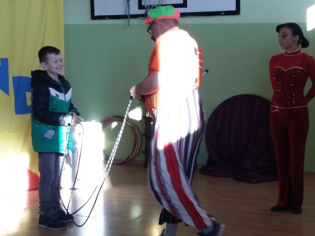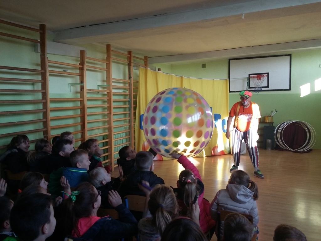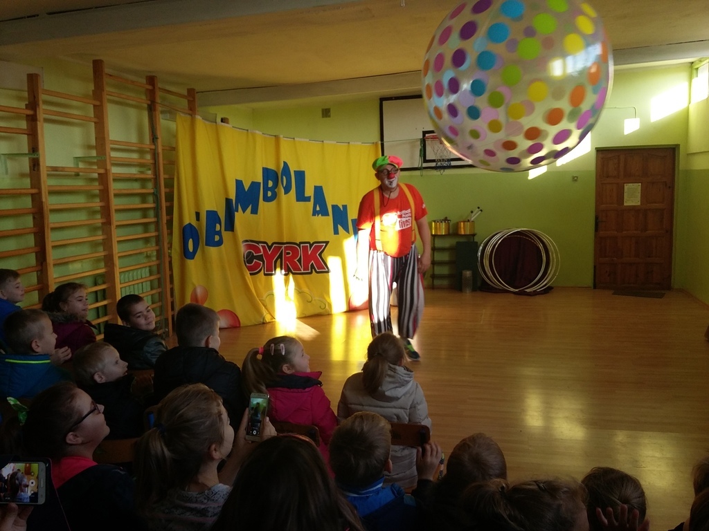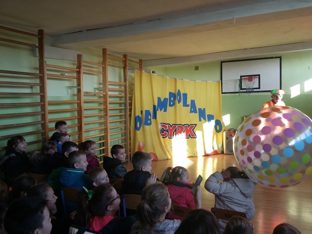 22 listopada 2016 r. odwiedzili naszą szkołę artyści cyrkowi. Zabawy i śmiechu było co niemiara. Dzieci bawiły się oglądając popisy akrobatyczne na małym rowerku , z obręczami i sztuki iluzji. Były nie tylko widzami, ale i próbowały swych talentów cyrkowych, włączając się czynnie do zabaw, gdyż spośród publiczności zostali wybrani ochotnicy do wzięcia udziału w przedstawieniu. Zapierającą dech w piersiach stała się chwila, gdy artystka pojawiła się z wężem i wyszła do publiczności, aby każdy mógł go dotknąć. Umiejętności cyrkowców wszystkim bardzo się podobały, o czym świadczyły burzliwe oklaski po każdym pokazie.