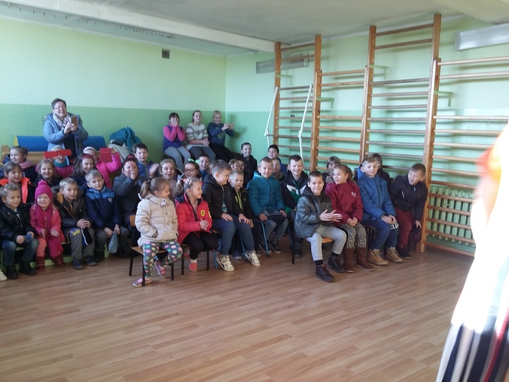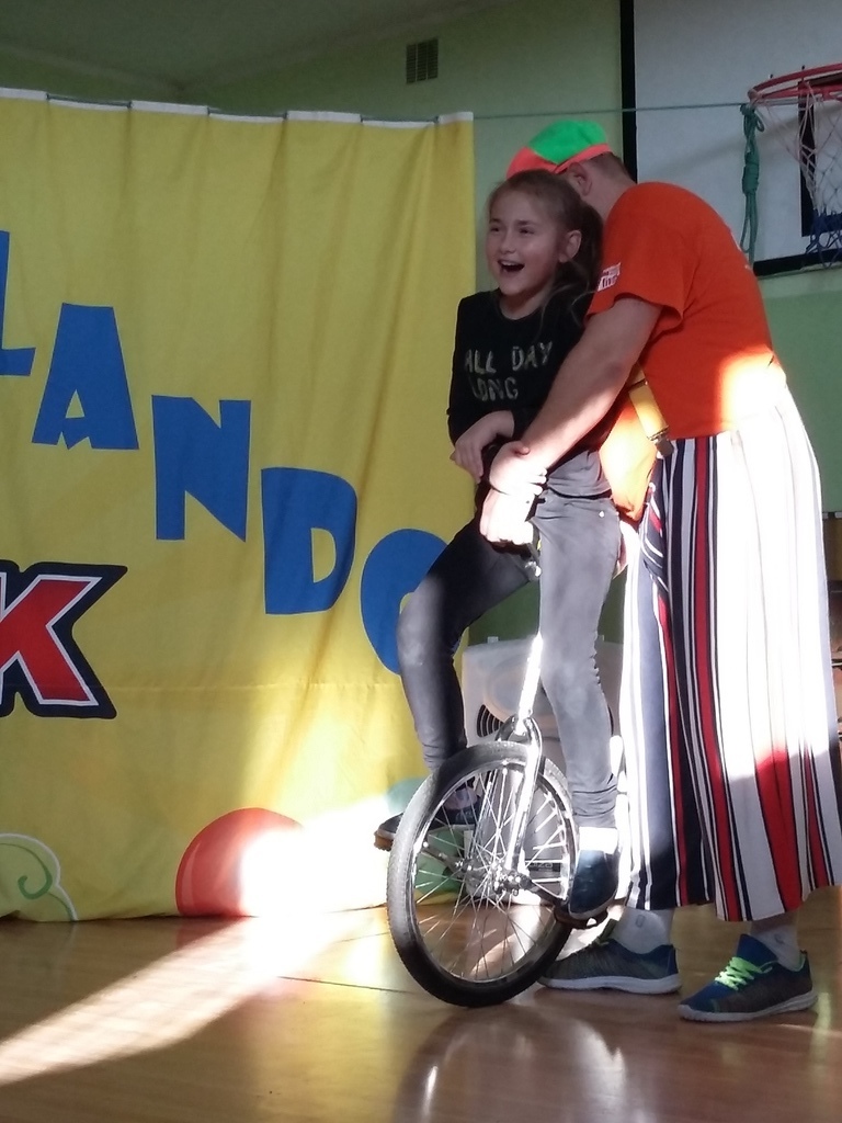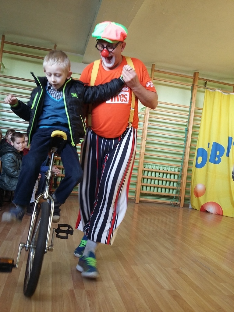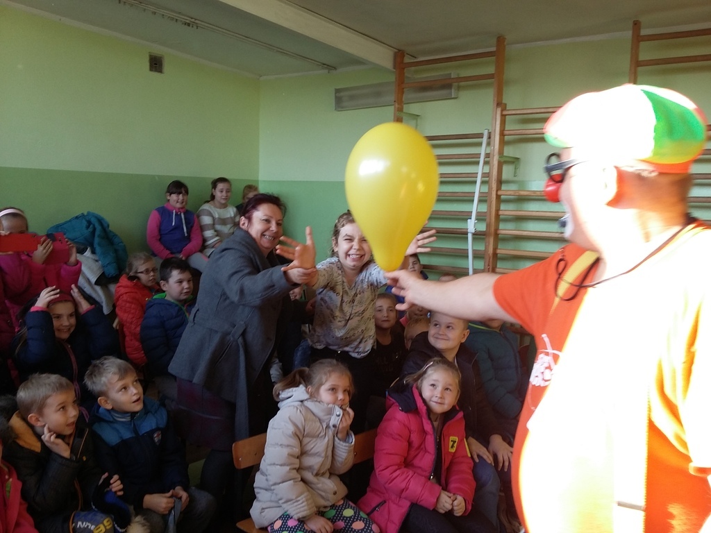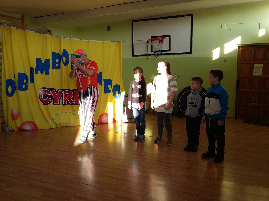 22 listopada 2016 r. odwiedzili naszą szkołę artyści cyrkowi. Zabawy i śmiechu było co niemiara. Dzieci bawiły się oglądając popisy akrobatyczne na małym rowerku , z obręczami i sztuki iluzji. Były nie tylko widzami, ale i próbowały swych talentów cyrkowych, włączając się czynnie do zabaw, gdyż spośród publiczności zostali wybrani ochotnicy do wzięcia udziału w przedstawieniu. Zapierającą dech w piersiach stała się chwila, gdy artystka pojawiła się z wężem i wyszła do publiczności, aby każdy mógł go dotknąć. Umiejętności cyrkowców wszystkim bardzo się podobały, o czym świadczyły burzliwe oklaski po każdym pokazie.
