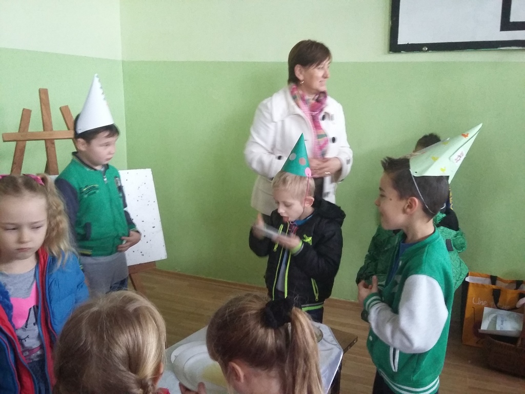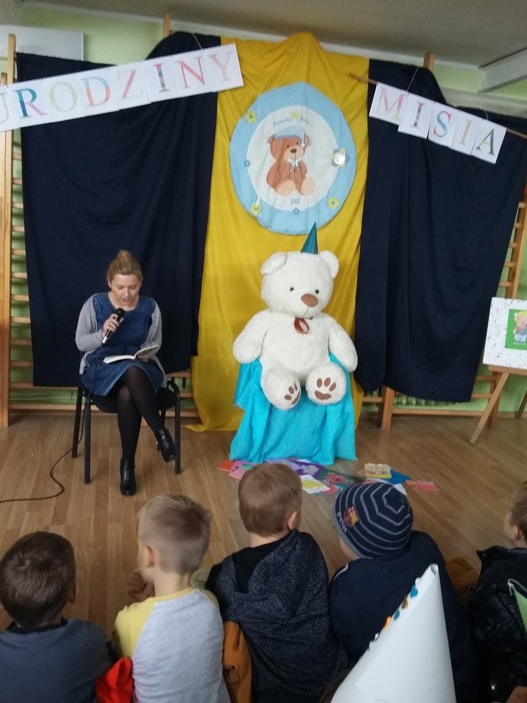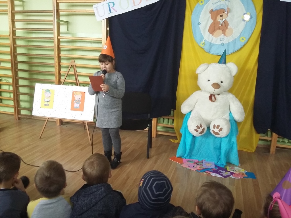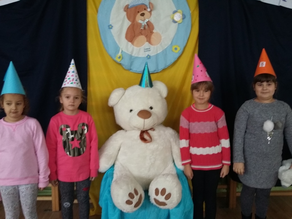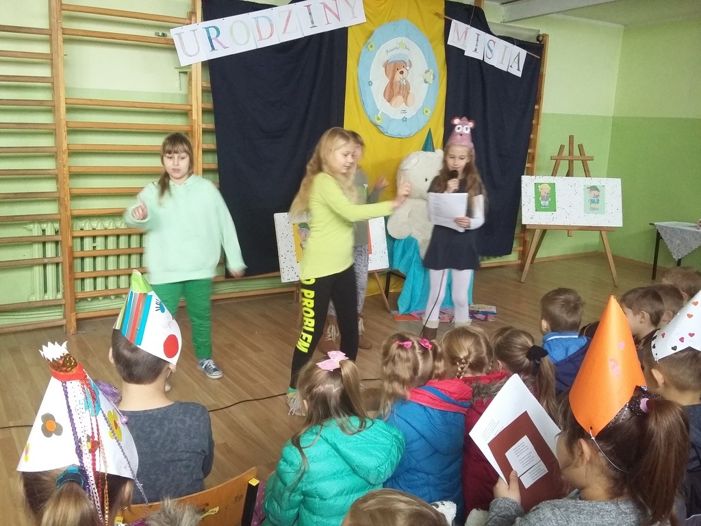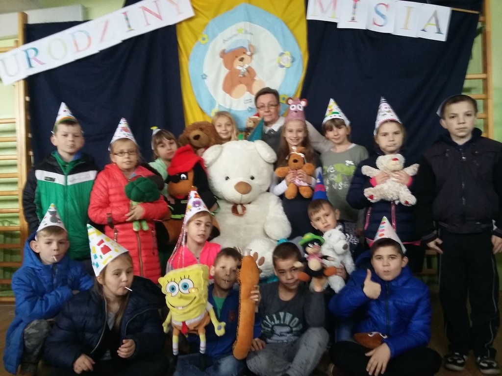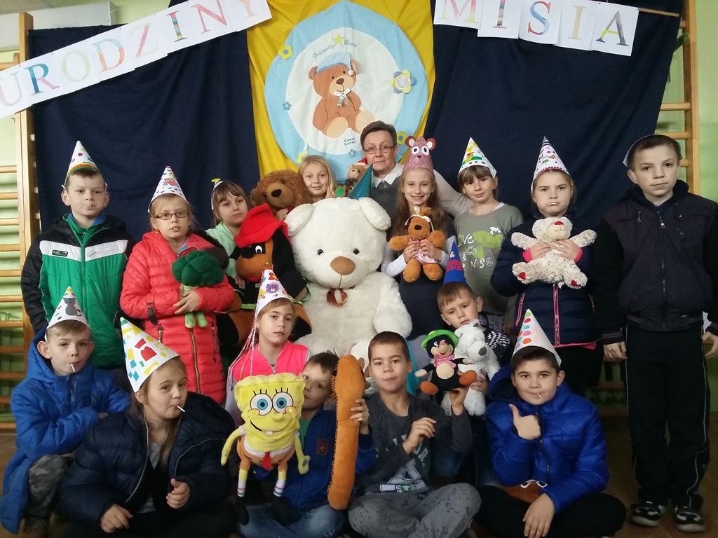 Z okazji Święta Pluszowego Misia, uczniowie klasy II wraz z wychowawczynią zorganizowali w dniu 25 listopada urodziny pluszowego misia – swojego przyjaciela. Współudział w organizacji tej imprezy miała także biblioteka szkolna. Na urodziny zostały zaproszone dzieci z klasy 0, I i III. Każde zaproszone dziecko przyniosło do szkoły swojego misia - pluszaka. Najpierw uczeń klasy II złożył Misiowi życzenia, a wszystkie dzieci wręczyły jubilatowi własnoręcznie wykonane laurki z życzeniami w języku angielskim. Wszyscy z dumą, w rytm piosenki „Pluszowy Miś” prezentowali swojego pluszaka. Każde dziecko wzięło udział w konkursie – zabawie, gdzie za udział otrzymało dużego lizaka. Młodsze dzieci kolorowały i ubierały misie, starsze odpowiadały na pytania związane z lekturą „Kubuś Puchatek”. Wszyscy wysłuchali fragmentu wymienionej książki, co bardziej rozbudziło ciekawość i utrwaliło ich wiedzę. W lektora zamieniła się pani Justyna Budner w ramach akcji „Cała Polska czyta dzieciom”, za co otrzymała od dzieci „order uśmiechu”.