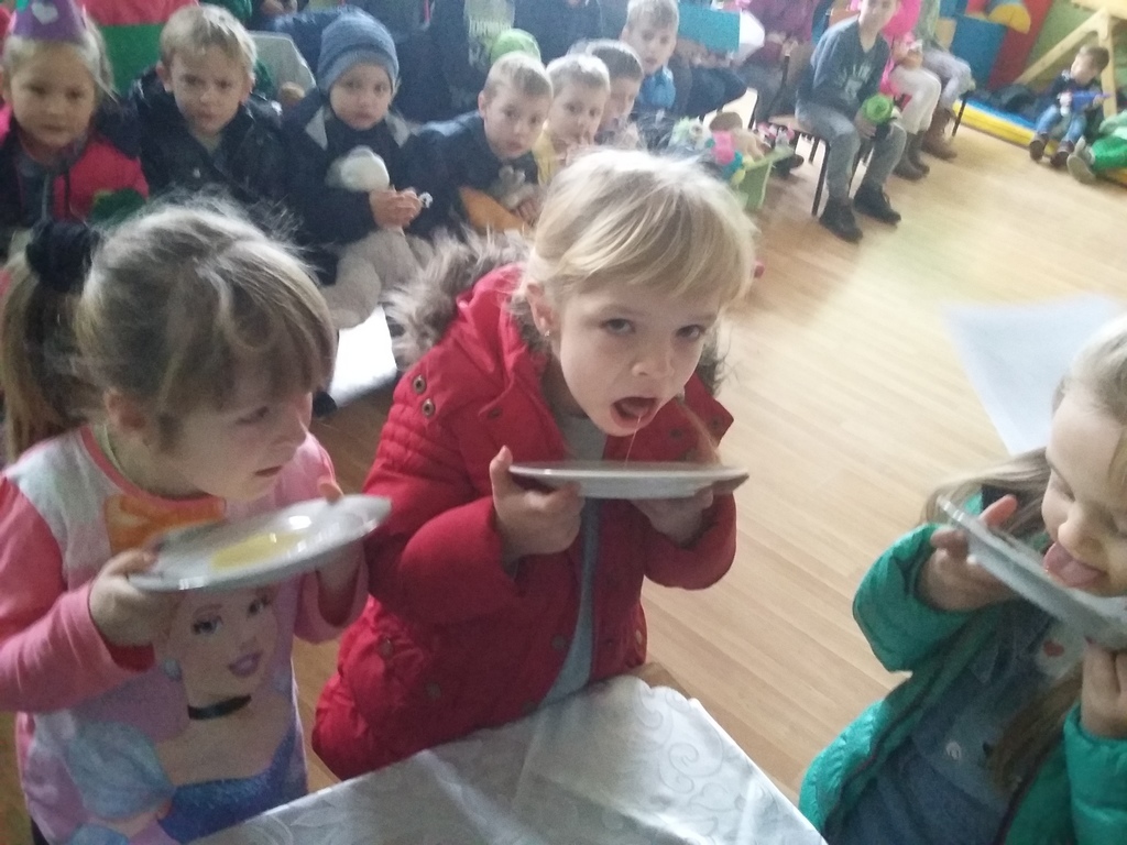 Dzieci chętnie recytowały wiersze, śpiewały znane piosenki o misiach. Każde otrzymało dyplom „Przyjaciela Pluszowego Misia”. A na końcu było najsmaczniej, bo każdy zjadł kawałek tortu upieczonego specjalnie na tę okazję przez jedną z mam. ( Dziękujemy pani Ewie Sieroń za pyszny tort.)
