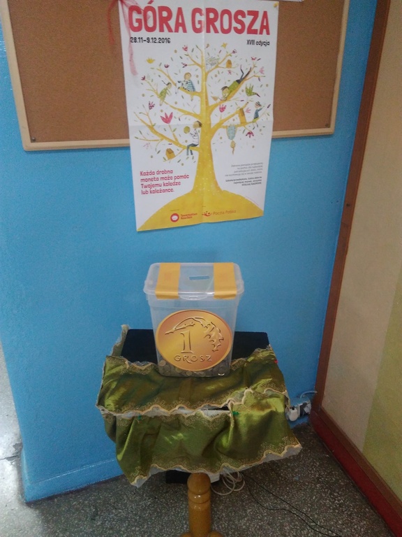 Dnia 9 grudnia dobiegła końca XVII edycja ,,Góry grosza''. Akcja ta cieszy się dużą popularnością w wielu polskich szkołach , a także w naszej. W związku z tym przyłączyliśmy się , aby wesprzeć szczytny cel. Na dobry początek pan Dyrektor wrzucił wszystkie grosze ze swojej skarbonki ,,hipopotamki''. W ślad poszło wiele osób ,które podarowały przysłowiowy grosik. Dziękujemy wszystkim, a w szczególności tym ,którzy zaangażowali się bardzo mocno. Na wyróznienie zasługują uczniowie z klasy drugiej : Marika Cicha , Mateusz Sieroń, Maciek Marciniak , Kuba Chrzanowski oraz wychowawczyni kl.II . Jeszcze raz wielkie dzięki.