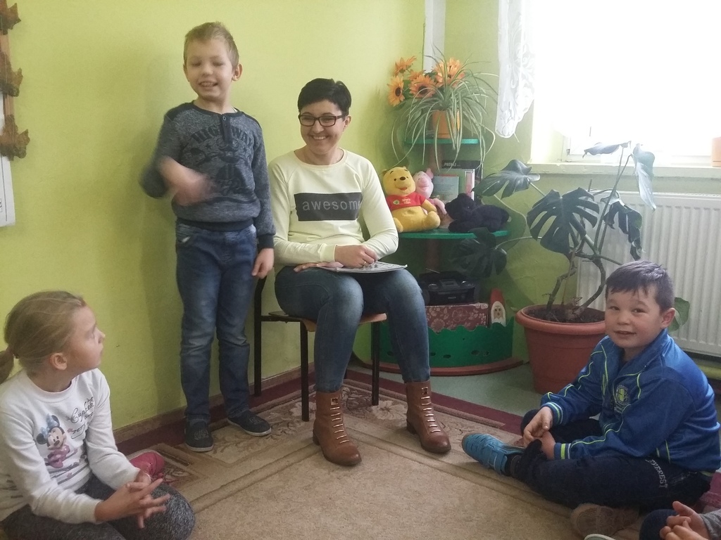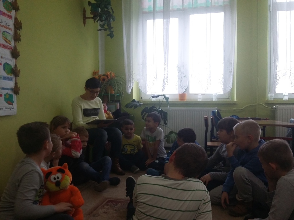 W listopadzie i w styczniu odbyły się już kolejne spotkania w klasie II w ramach akcji promującej czytelnictwo w naszej szkole. Dzieci są bardzo zadowolone i dumne, gdy czytają ich rodzice. Czytanie książek przez ich mamy sprawia im wiele radości. Naszą klasę odwiedziła mama Mateusza i mama Maćka. Dzieci słuchały z zaciekawieniem bajek „Kot w butach” i „Złota Kaczka”. Po wysłuchaniu utworów literackich wykonały prace plastyczne związane z ich treścią.