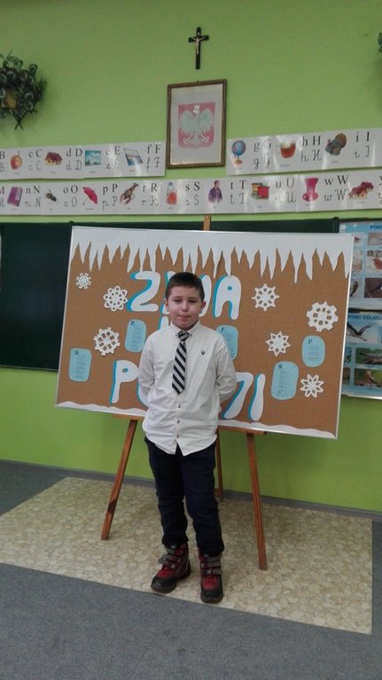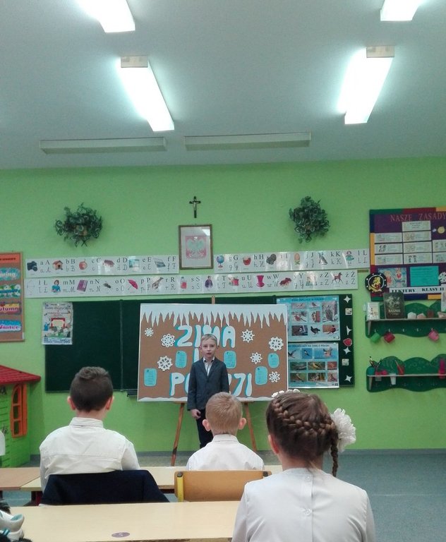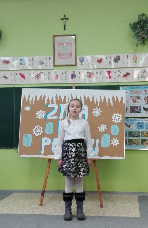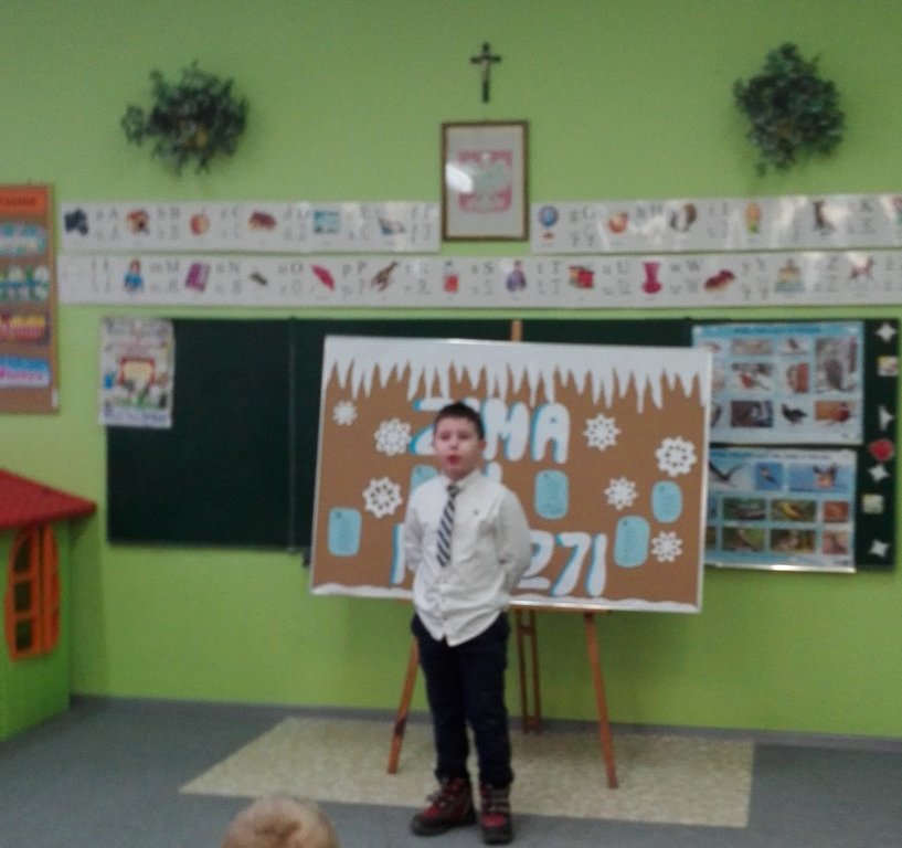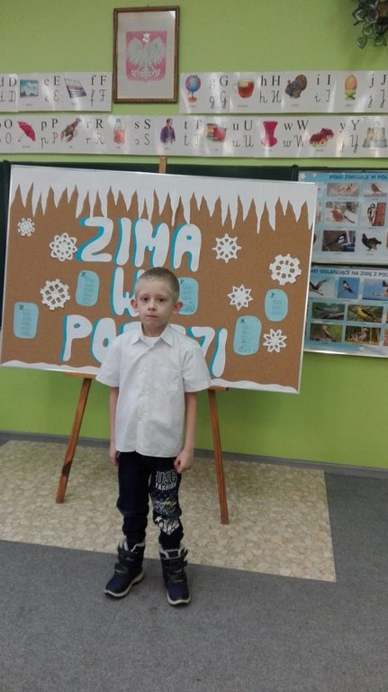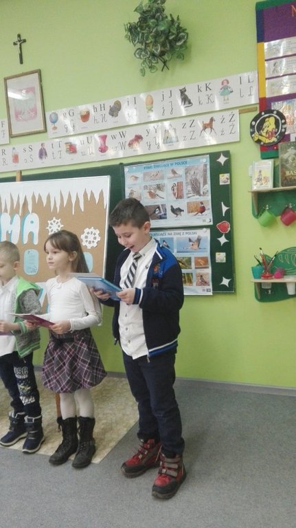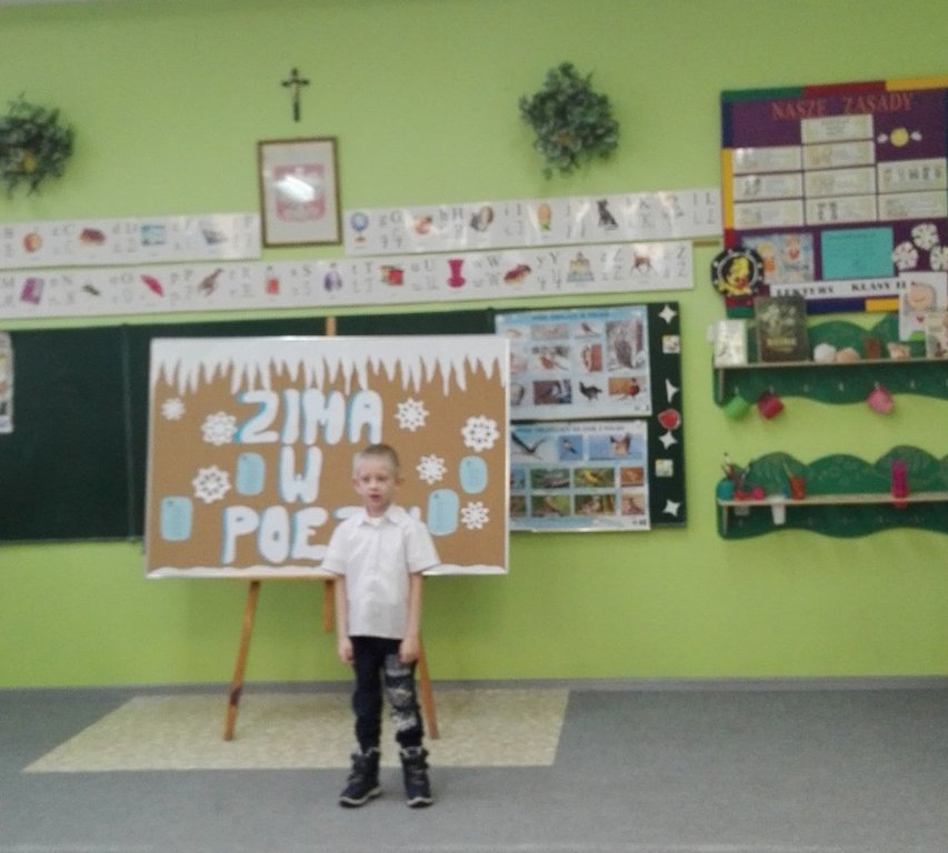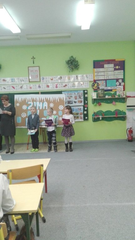 Dnia 23 -I-2016 r. uczniowie klas młodszych z naszej szkoły wzięli udział w Gminnym Konkursie Recytatorski ,,Zima w poezji'' zorganizowanym w Zespole Szkół w Kościelcu, odbył się w trzech kategoriach :