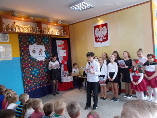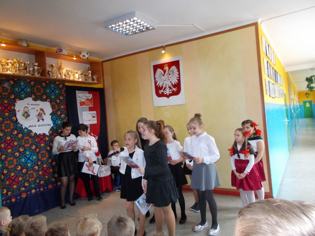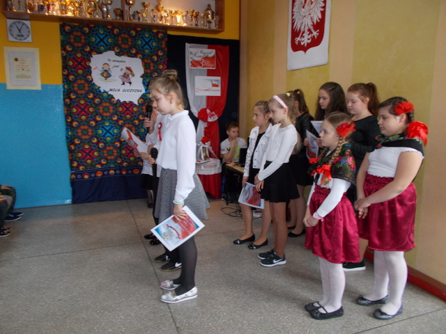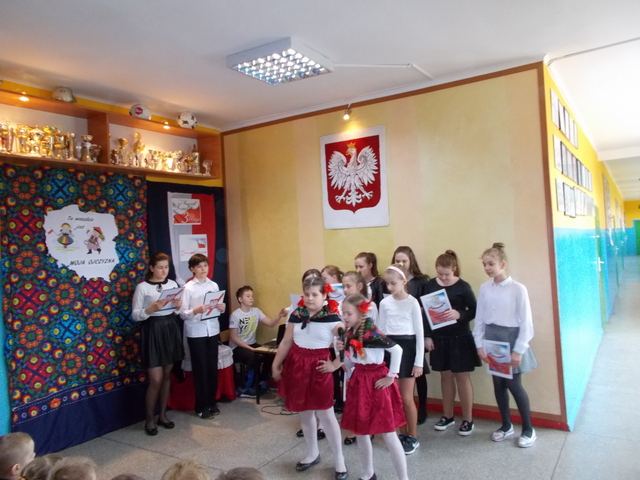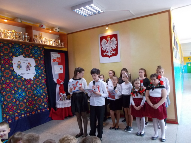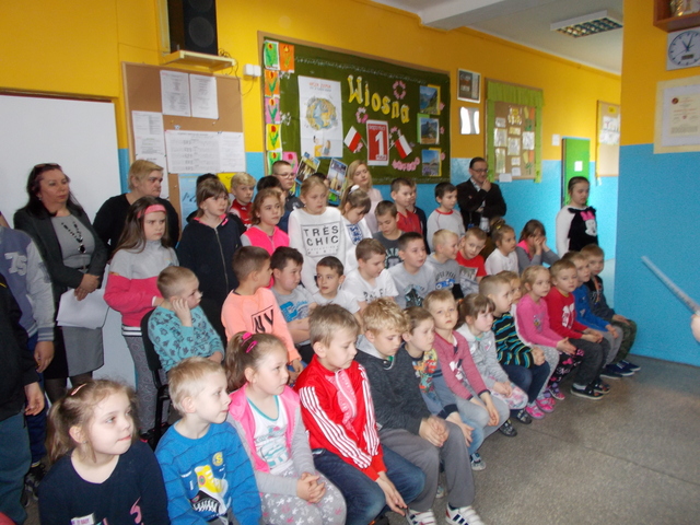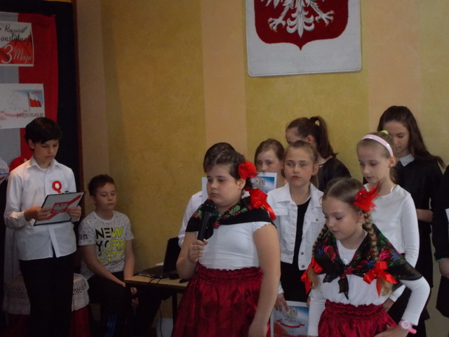 W naszej szkole wydarzenie to uczciliśmy 28 kwietnia uroczystym apelem, w którym wystąpili uczniowie zarówno klas młodszych jak i klas IV-VI. W montażu słowno -muzycznym usłyszeliśmy piękne wiersze oraz pieśni o tematyce patriotycznej. Uczniowie przypomnieli także tło historyczne wydarzeń z 3 maja 1791 roku i wyjaśnili, dlaczego jest to tak ważny dzień dla naszego kraju. Powagę uroczystości podkreśliły galowe stroje uczniów, barwy narodowe oraz scenografia.