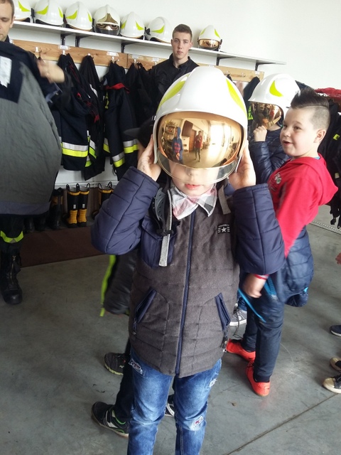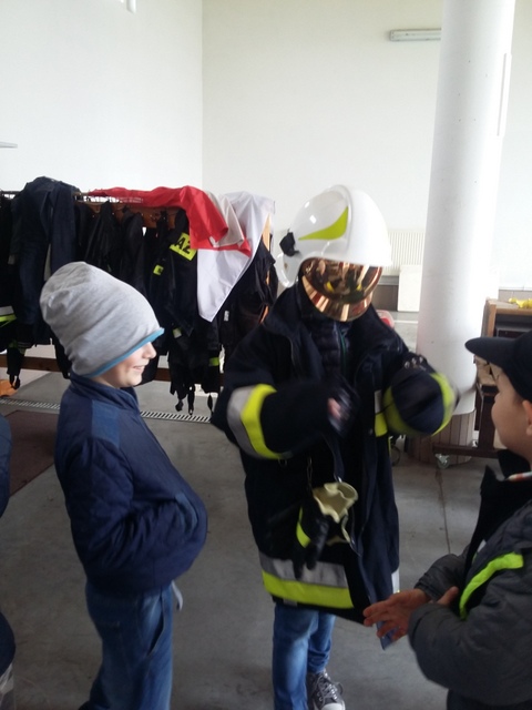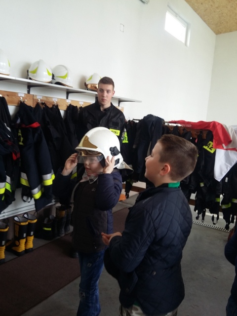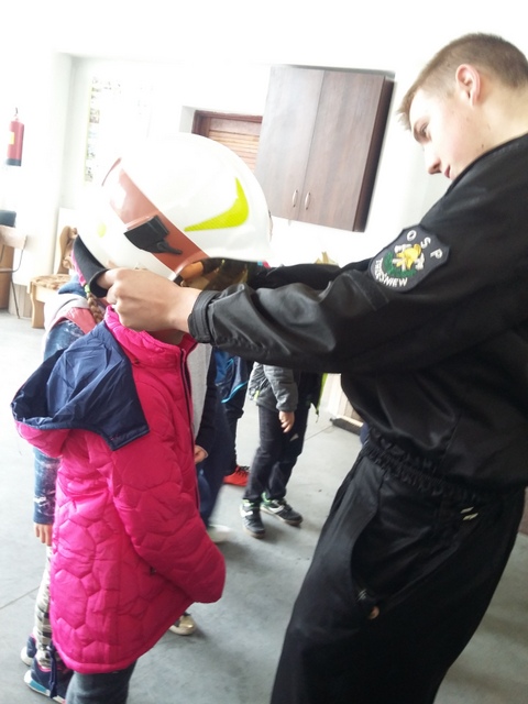 W dniu 5 maja uczniowie klasy II odwiedzili druhów Ochotniczej Straży Pożarnej w Trzęśniewie, aby złożyć im życzenia z okazji Dnia Strażaka. W czasie tego spotkania dzieci dowiedziały się, na czym polega praca strażaka i jak zachować się w czasie pożaru. Zapoznały się również ze sprzętem, którego używają w czasie pożaru oraz do ratowania ludzi w wypadkach samochodowych. Każdy miał możliwość przymierzenia strażackiego hełmu i stroju strażaka.