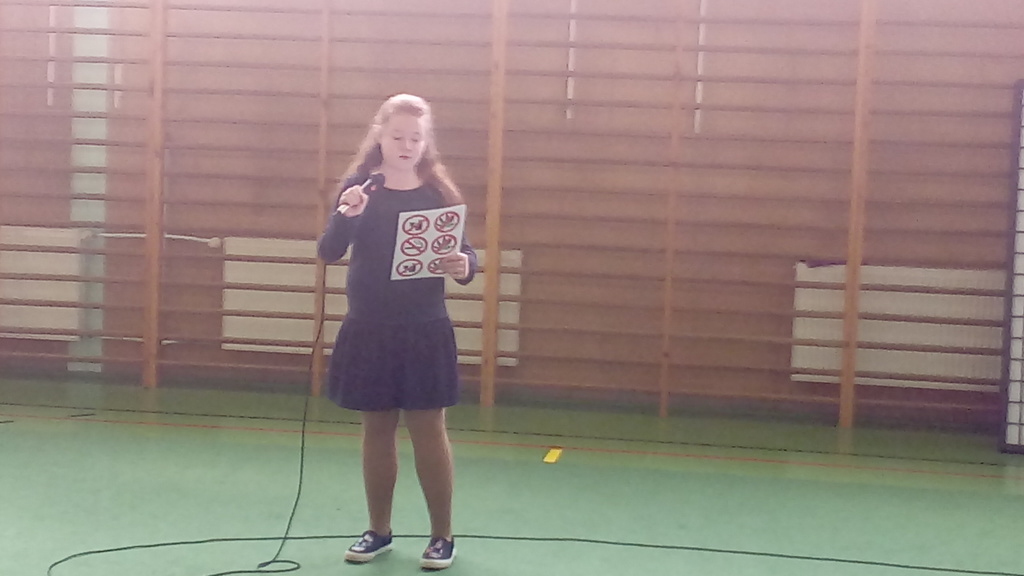 Po raz kolejny w hali sportowej przy Zespole Szkół w Kościelcu dnia 11 maja 2017r. spotkała się młodzież szkół podstawowych i gimnazjum z terenu gminy Kościelec. Celem wspomnianego spotkania była akcja profilaktyczna pod hasłem ,,Zgrożenia to zniszczenia”.Uroczystość przebiegała według wcześniej ustalonego harmonogramu. Uczniowie Gimnazjum Zespołu Szkół w Kościelcu i Szkoły Podstawowej w Ruszkowie wystąpili w scenkach poruszających problem alkoholizmu, narkomanii, uzależnienia od papierosów i dopalaczy. Natomiast reprezentanci pozostałych szkól przedstawili wiersz lub piosenkę o tematyce uzależnień. Naszą szkołę reprezentowala Weronika Jaworska, która zaśpiewała piosenkę ułożoną przez uczniów klas IV-VI; do pracy twórczej włączył sę także pan Zbigniew Michalec. Akcja zakończyła się pochodem ulicami Kościelca, podczas którego uczniowie prezentowali transparenty mówiące o szkodliwości używek oraz wrzucali do skrzynek na listy przy domostwach wcześniej przygotowane ulotki, a także teksty wierszy lub piosenek.