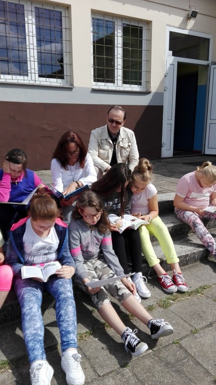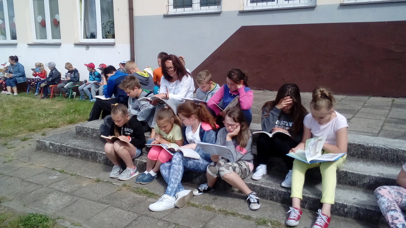 W czwartek 1 czerwca o godzinie 10.00 uczniowie Szkoły Podstawowej w Trzęśniewie po raz drugi przyłączyli się do ogólnopolskiej akcji masowego czytania ,,Jak nie czytam, jak czytam". W tym samym czasie uczniowie z całej Polski zebrali się w swoich szkołach lub poza nimi, aby wspólnie czytać swoje ulubione książki. Przy organizacyjnej pomocy bibliotek stworzyli niespotykaną dotąd ogólnopolską akcję, ustanawiając rekord czytania w jednym momencie. W tym dniu zebraliśmy się na boisku szkolnym , po czym wszyscy razem odliczyliśmy do dziesięciu. Punktualnie o godzinie10.00 zadzwonił szkolny dzwonek, oznajmując rozpoczęcie wspólnego czytania. Tak jak jest w założeniach akcji, przez dziesięć minut uczniowie oraz nauczyciele czytali książki. Niemal każdy z uczniów przyniósł swoją książkę z domu, którą lubi i którą chętnie podzieliłby się z innymi dziećmi. Po upływie czasu, który był przeznaczony na wspólne czytanie ponownie zadzwonił dzwonek i wszyscy rozeszli się do klas. Akcja została zorganizowana przez Towarzystwo Nauczycieli i Bibliotekarzy Szkół Polskich oraz redakcję miesięcznika „Biblioteka w Szkole”. Cieszymy się bardzo, iż mogliśmy ponownie uczestniczyć w tej akcji, choć nie tak licznie, jak w ubiegłym roku.
