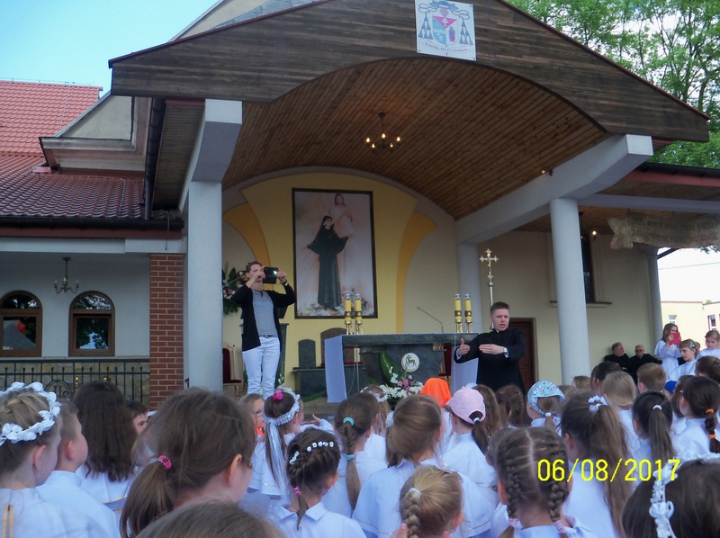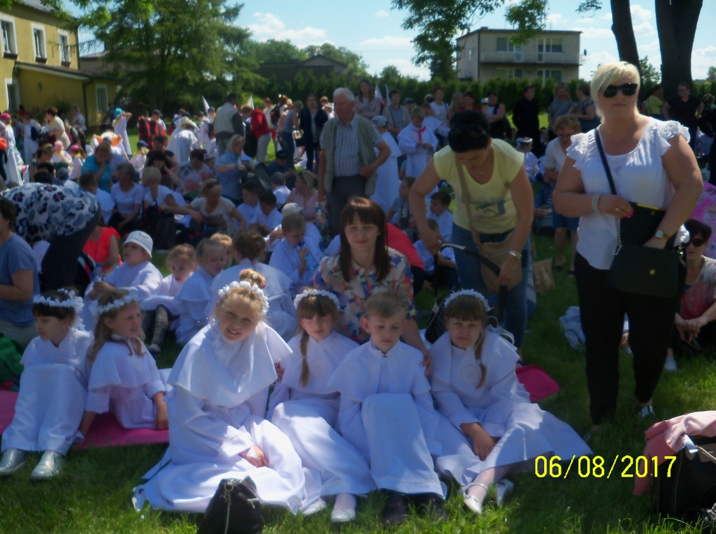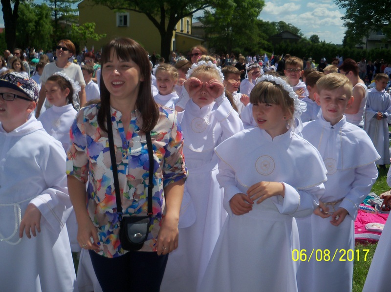 Dnia 8 czerwca 2017r.  w Sanktuarium Urodzin i Chrztu św. Faustyny Kowalskiej odbyło się diecezjalne spotkanie dzieci, które w tym roku po raz pierwszy przystąpiły do I Komunii Świętej. Nieliczna grupa uczniów klasy trzeciej z naszej szkoły uczestniczyła w spotkaniu wraz z rodzicami. Zjazd rozpoczął się o godz. 9:00 od nawiedzenia Głogowca i domu, w którym przyszła na świat i wychowała się Apostołka Bożego Miłosierdzia. W Głogowcu zostaliśmy powitani przez księdza Janusza Kowalskiego, kustosza świnickiego sanktuarium. Następnie w atmosferze modlitwy, niosąc relikwie świętej siostry Faustyny, wyruszyliśmy z domu do kościoła, w którym została ochrzczona Helena Kowalska. Po dotarciu na plac przed Sanktuarium czekała na nas kolejna niespodzianka. Ksiądz Michał Krygier (wywodzący się z naszej parafii), dyrektor Wydziału Duszpasterstwa Ogólnego Kurii Włocławskiej i organizator spotkania wraz z zespołem Jordan zapraszał wszystkich do wspólnej zabawy, śpiewów i żywego przeżywania wiary. Centralnym punktem pielgrzymki była Eucharystia, której przewodniczył ksiądz biskup Wiesław Mering, zaś homilię wygłosił ks. Łukasz Piórkowski, który najmłodszym znany jest z telewizyjnego programu „Ziarno”. W tym roku do Świnic Warckich przybyło 3080 dzieci.
