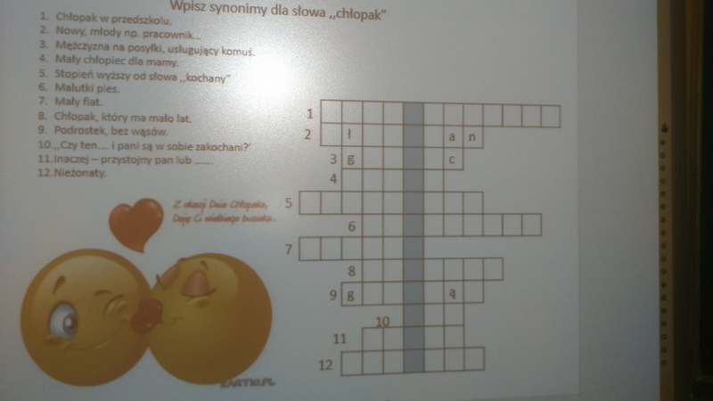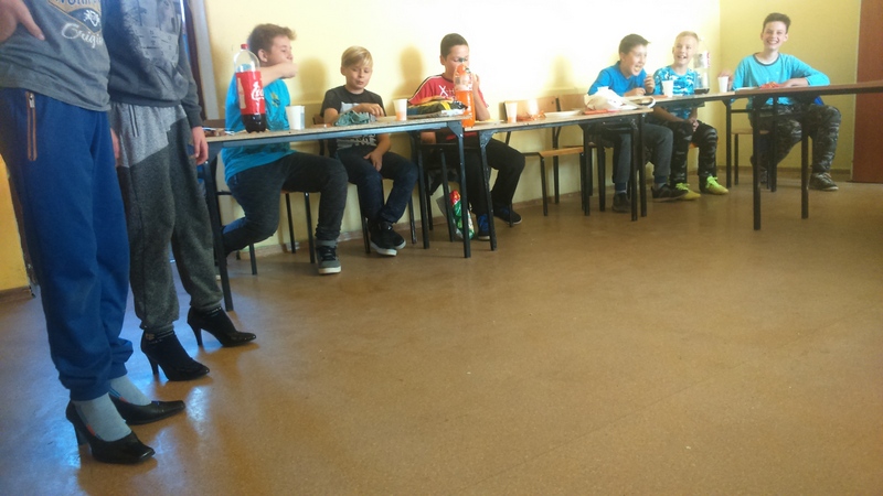 Zadaniem chłopców było między innymi uczesanie wylosowanej koleżanki, rozpoznawanie  koleżanek z zawiązanymi oczami czy przejście po klasie w butach na wysokich obcasach. Chłopcy losowali również różne zadania .  Musieli wykonać przysiady, pompki, przenieść koleżankę w drugi koniec klasy, przytulić osobę siedzącą po swej  lewej czy prawej stronie. Wszyscy mogli rozwijać swoje słownictwo , rozwiązując krzyżówkę z synonimami do słowa ,,chłopiec”.  Nie zabrakło symbolicznych prezentów i poczęstunku.