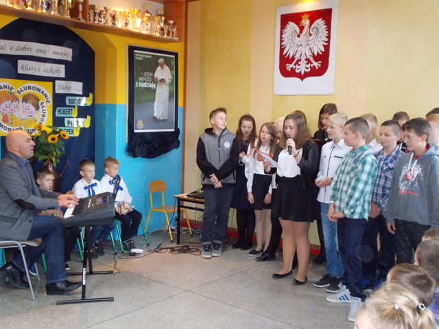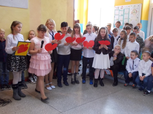 Do jednych z najbardziej uroczystych dni w szkole należy Dzień  Edukacji Narodowej . Jest to dzień, w którym uczniowie  wyrażają wdzięczność i uznanie dla pięknej, aczkolwiek trudnej pracy pedagogów oraz wszystkich pracowników oświaty.  W naszej szkole uroczysty apel z okazji Dnia Edukacji Narodowej odbył się w piątek 13 pażdziernika 2017 r. Uczniowie, w krótkiej części artystycznej, na którą składały się wiersze ,piosenki oraz  wiązanki życzeń, wyrazili wdzięcznośc wszystkim pracownikom szkoły.  Przedstawiciele  S U,  skladając życzenia , wręczyli nauczycielom oraz pracownikom obsługi  symboliczne róże w dowód wdzięczności za trud i włożoną pracę w ich nauczanie i wychowanie . Do życzeń przyłączył się także  ksiądz proboszcz Tomasz Jener,  składając na ręce pana Dyrektora przepiękny kosz z kwiatami . Uroczystość zakończyła się świętowaniem przy torcie wręczonym przez przedstawicieli Rady Rodziców.  Dziękujemy !