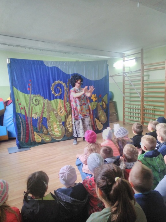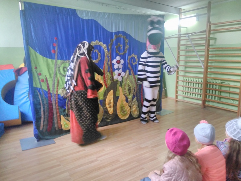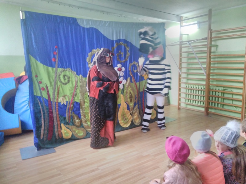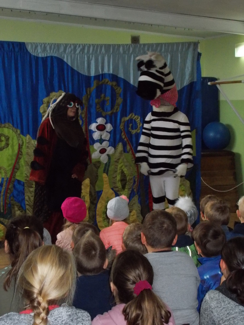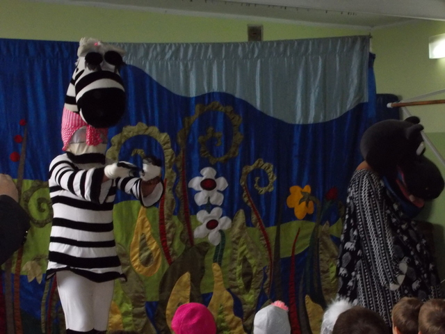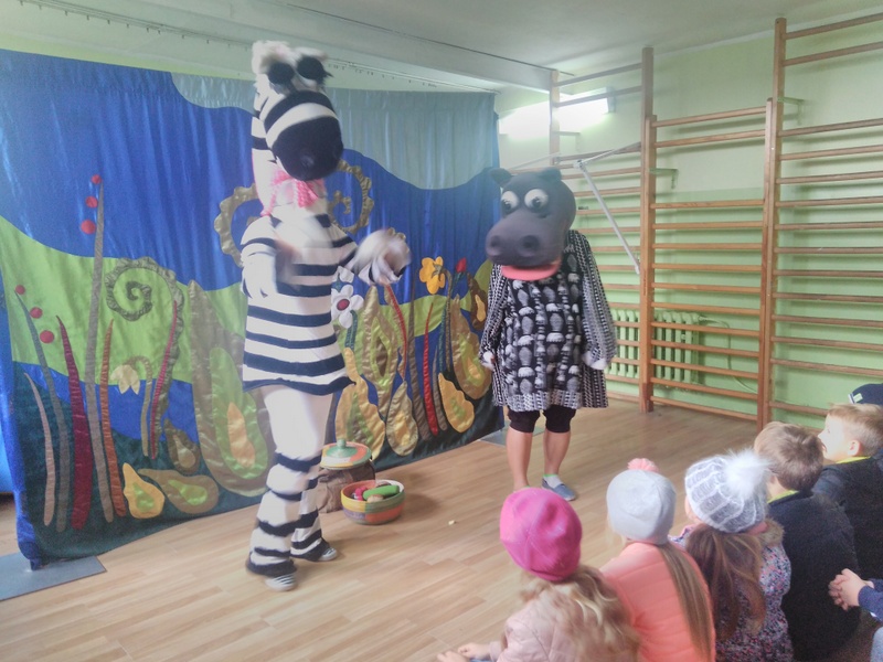Aktorzy z teatru Prekursor wcielili się w role zebry, jeżozwierza i hipopotama. Uczniowie kilkakrotnie wstawali z krzeseł, tańczyli oraz gimnastykowali się w rytm zasłyszanych piosenek. Było bardzo wesoło. Postacie ze sztuki teatralnej namawiały widzów do aktywnego trybu życia i gimnastyki. Wszystkim obecnym uczniom i nauczycielom spektakl bardzo się podobał.