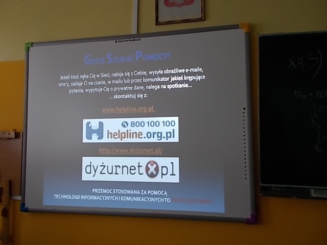 Uczniowie dowiedzieli się, gdzie mogą szukać pomocy w sytuacji zagrożenia, poznali numer infolinii - 800 100 100.  Zostali zapoznani z konsekwencjami prawnymi za zachowania określane mianem cyberprzemocy. Zajęcia, wzbogacone pokazami multimedialnymi, miały za zadanie zwiększyć świadomość dzieci i młodzieży w zakresie bezpieczeństwa podczas korzystania z Internetu i odpowiedzialności za czyny związane z przestępczością internetową.