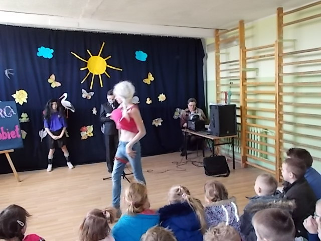 Dzień Kobiet – czyli święto żeńskiej części globu ziemskiego - z powodu drobnych zakłóceń w naszej szkole świętowaliśmy dopiero 21 marca. Z tej okazji, męska część społeczności szkolnej przygotowała zabawne przedstawienie. Pan profesor Alfred Gryzipiórek – Cezary Milewski, w swoim wykładzie przedstawił dokładną definicję słowa KOBITA oraz zaprezentował różne typy kobiet, między innymi sportsmenka, kokietka, kumpela, zdolna dziewuszka czy feministka. W rolę pięknych i zgrabnych asystentek Pana Profesora wcielili się: Albert Sowiński, Szymon Stachowiak, Igor Lisiecki, Mateusz Milewski oraz Wiktor Płocharczyk.