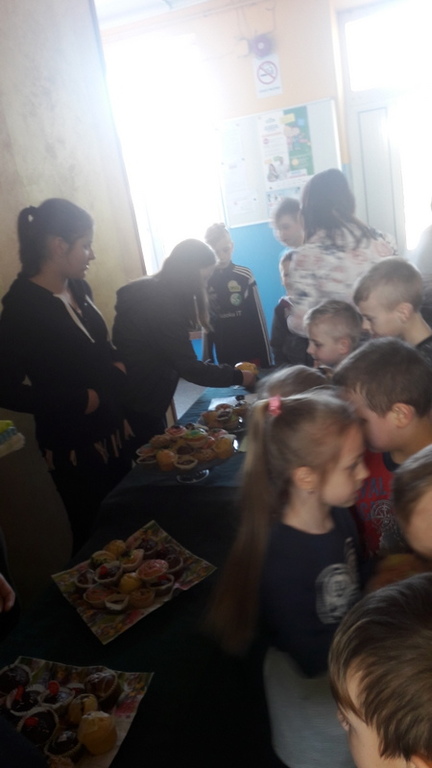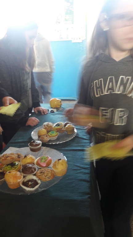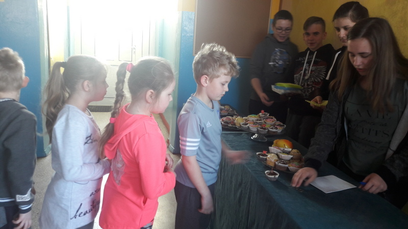 W piątek 6 kwietnia w naszej szkole odbył się Światowy Dzień Muffinek. Tego dnia można było kupić słodkie babeczki, cena muffinki to 1,50 zł. Zebrane pieniądze przeznaczone zostaną na potrzeby Samorządu Uczniowskiego. Muffinki piekły dziewczyny z Samorządu Uczniowskiego. Babeczki były bardzo różne, np. z czekoladą, marmoladą, posypkami i nawet owsiane, których (prawie) nikt nie chciał kupować. Z tego dnia wszyscy byli zadowoleni i każdy uczeń kupował muffinki.