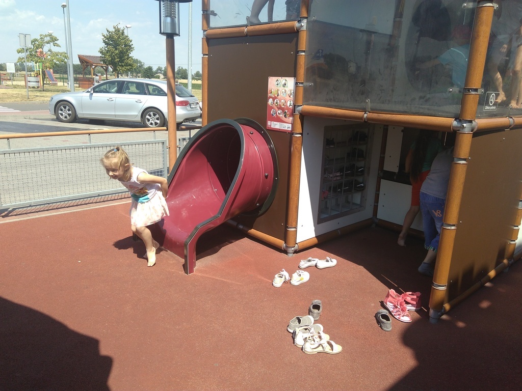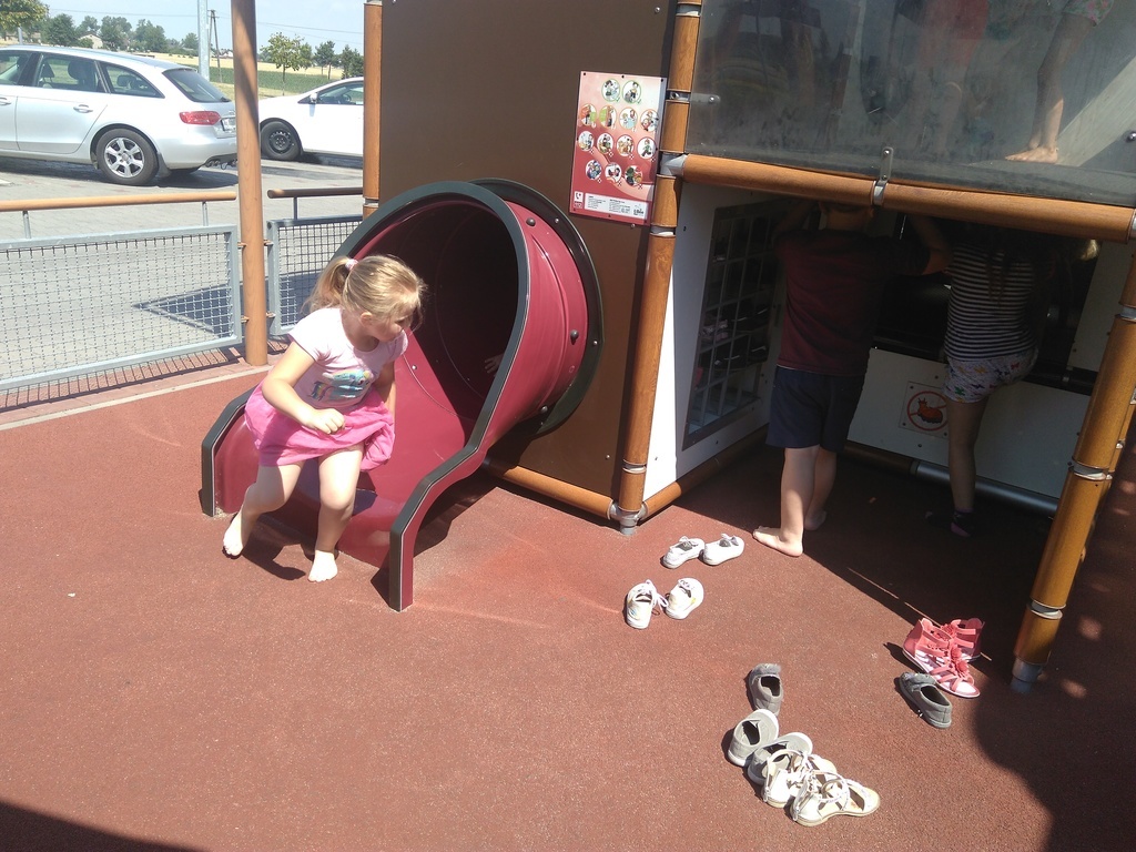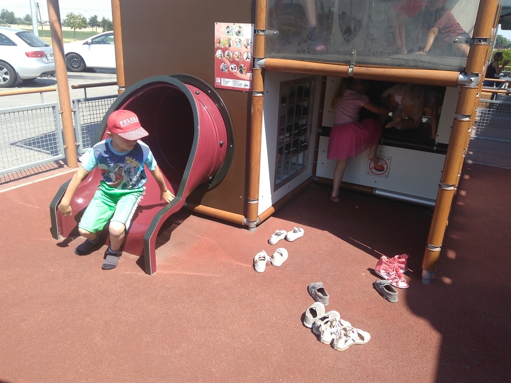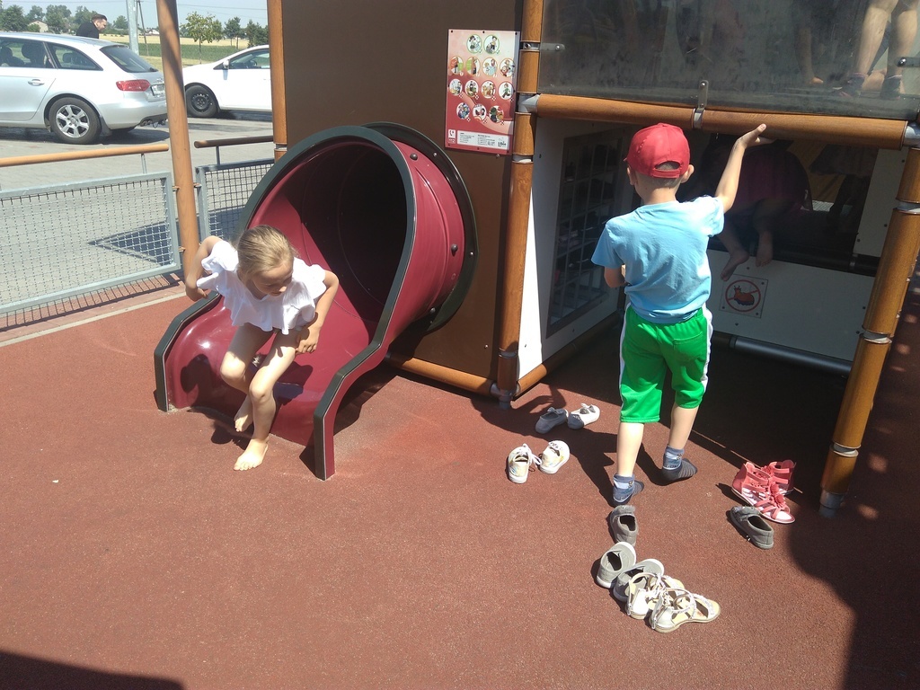Na koniec nie ominęły zjeżdżalni przed restauracją. Był tak wielki upał, że ciężko było dotknąć się do urządzenia. Podczas wyprawy dzieciom towarzyszyły trzy mamy: pani Edyta Pokorska, pani Monika Biernat i pani Agnieszka Cicha. Serdecznie dziękujemy Paniom za pomoc.