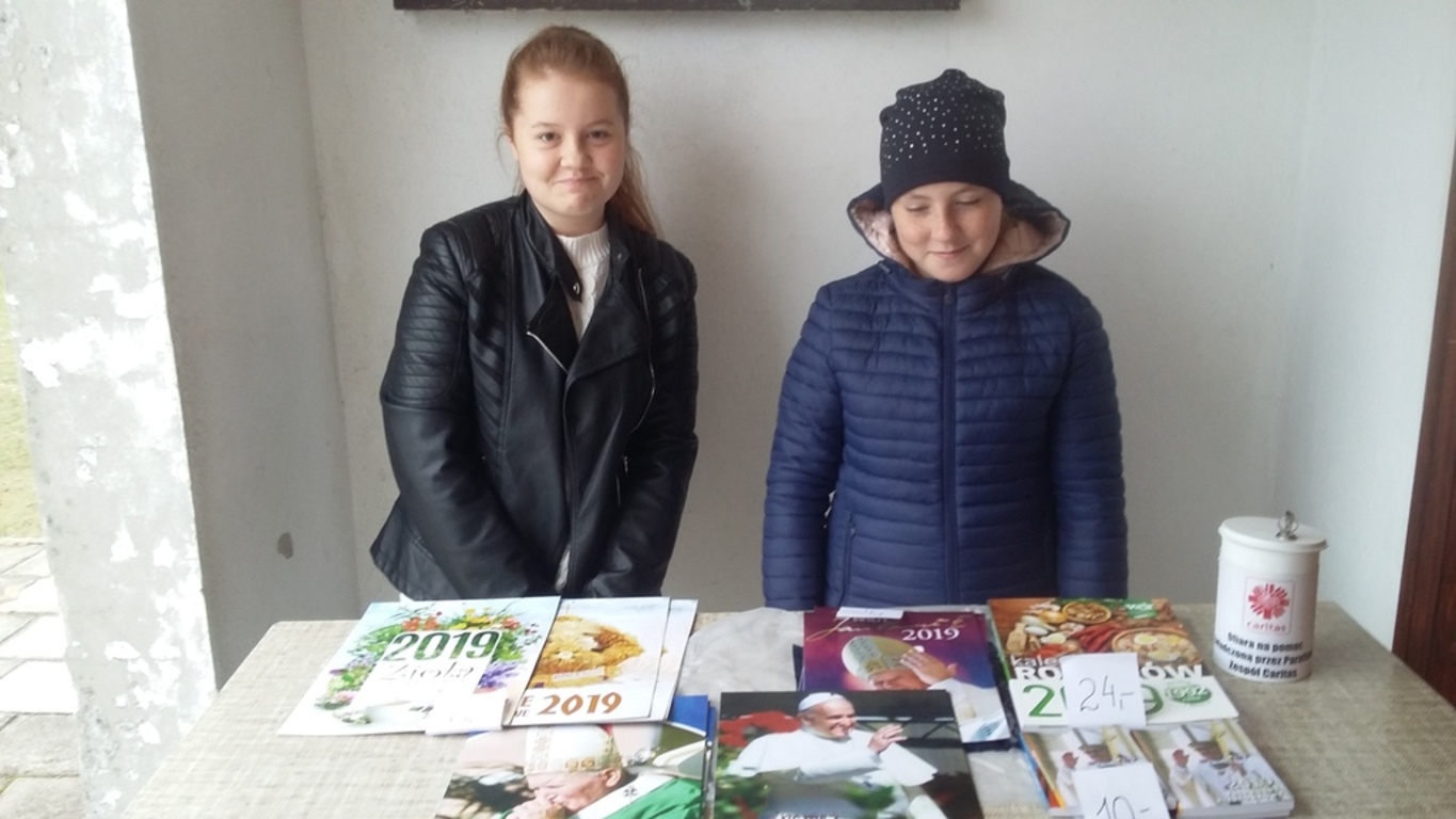 Grupa wolontariuszek z naszej szkoły pokazała , że wolontariat to nie tylko działania na rzecz środowiska szkolnego, ale również obejmuje on działania w środowisku lokalnym. W październikowe niedziele wolontariuszki pomagały  Parafialnemu Zespołowi Caritas w sprzedaży kalendarzy. Zebrane pieniądze zostaną  przeznaczone na rzecz najbardziej potrzebujących osób z naszej parafii.