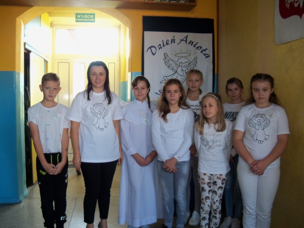 W przeddzień Uroczystości Wszystkich Świętych, po raz drugi w naszej szkole, odbył się „ Dzień Anioła”. Miał on uświadomić naszej społeczności szkolnej, że wcale nie jest trudno być życzliwym, serdecznym, miłym względem siebie, po prostu dać się lubić i w ten sposób dążyć do świętości. Dominującym kolorem ubioru była biel. Kierujemy serdeczne podziękowania  do osób, które wzięły sobie do serca te słowa i w ich ubiorze było to widoczne. A było wiele takich osób – pięknych „ Anielic i Aniołów”. Dla podkreślenia tego dnia, każdy otrzymał coś słodkiego i uśmiechniętego aniołka.