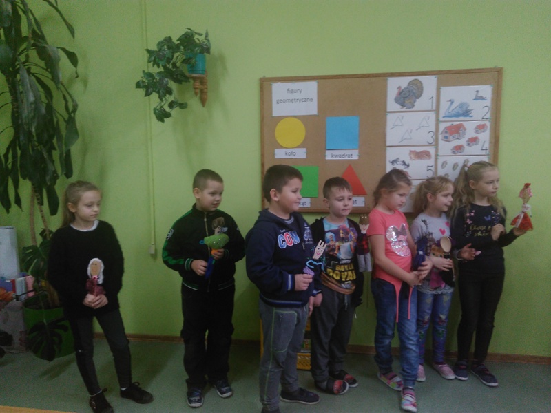 Uczniowie klasy I, realizując tematykę związaną z teatrem, poznali  pracę ludzi teatru. Wykonali kukiełki z drewnianej łyżki. W dniu 27 listopada wystawili przedstawienie wykorzystując swoje lalki - kukiełki. Jako widzów zaprosili swoich młodszych kolegów z oddziału przedszkolnego.