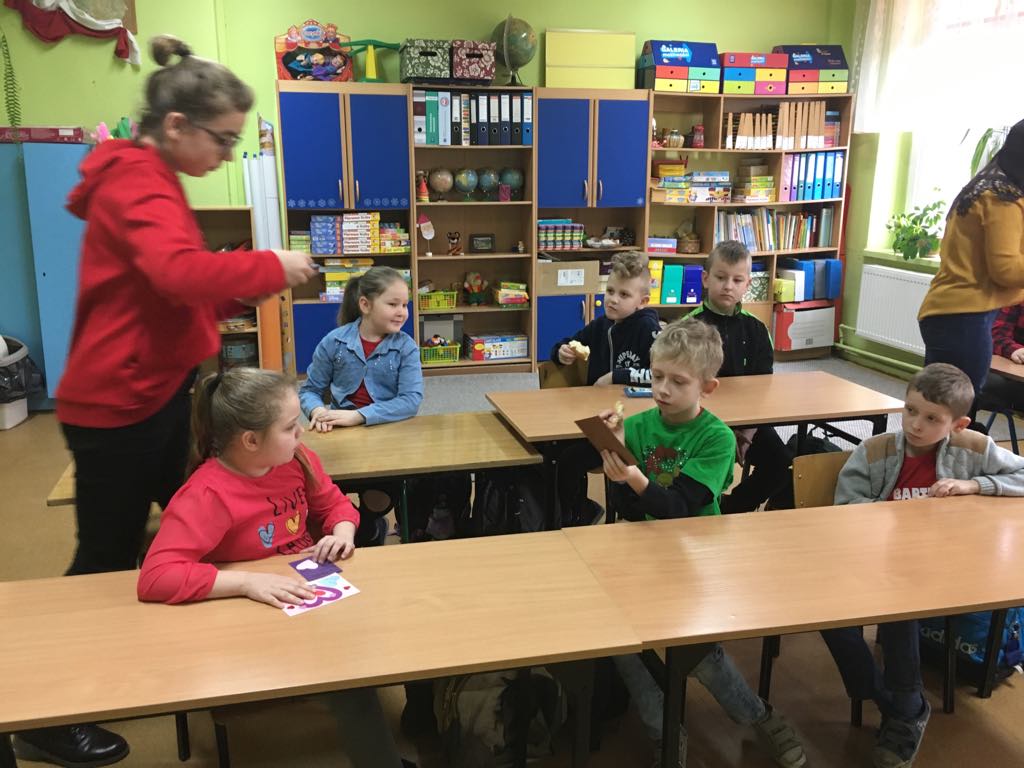 Nie inaczej było w naszej szkole. Samorząd Uczniowski zorganizował pocztę walentynkową. Do skrzynki wrzucano kartki i serduszka z wierszykami, wyrażając w ten sposób swoje sympatie. Emocji związanych z doręczaniem i otrzymaniem kartek było mnóstwo. Jak co roku, wyłoniliśmy Walentynkę i Walentego, którzy otrzymali największą liczbę kartek walentynkowych. W tym roku, wyjątkowo mieliśmy dwóch Walentych, którzy otrzymali równą ilość walentynek. Najwięcej dowodów sympatii otrzymali, Klaudia z klasy V, Kevin z klasy III oraz Mateusz z oddziału przedszkolnego. Wraz z gratulacjami otrzymali słodki upominek.