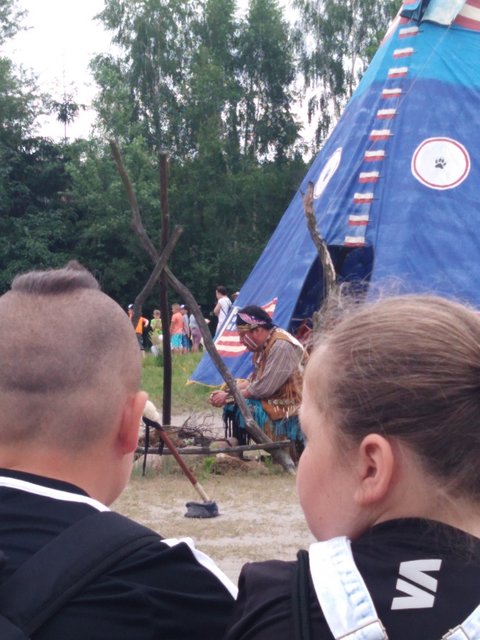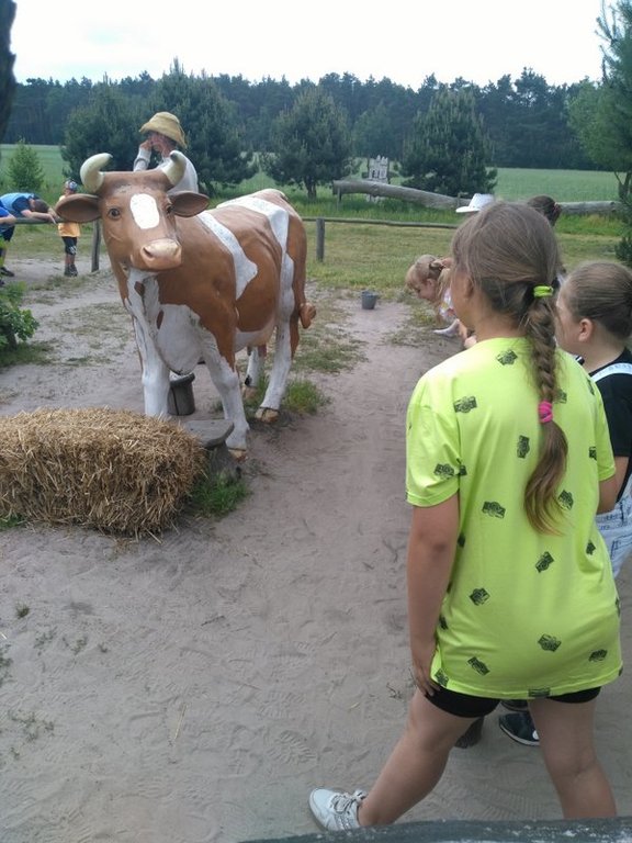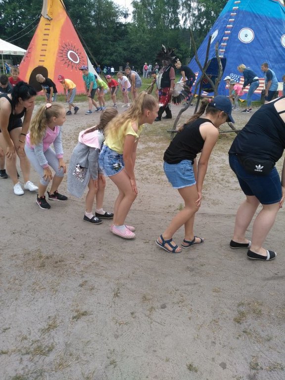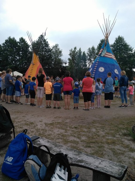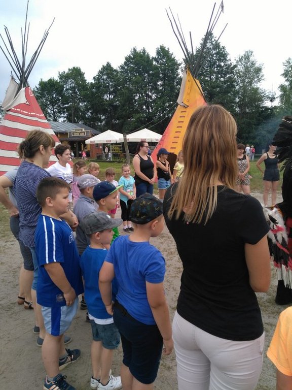 7 czerwca wybraliśmy się do WESTERNLANDU (w Józefowie) czyli wioski indiańskiej i miasteczka LAREDO TOWN na spotkanie z kowbojami i Indianami. Dojenie dzikiej krowy i poszukiwanie złota to nie jedyne atrakcje naszego wyjazdu. Naszą przygodę na „dzikim zachodzie” rozpoczęliśmy od wizyty u Szeryfa. Następnie zatańczyliśmy z prawdziwymi Indianami. Pokonanie Indiańskiego Toru Przygody czyli Mostu Irokezów, Równoważnia Szoszonów, Belka Apaczów, kanion z przeszkodami wcale nie było dla nas trudne, a w nagrodę każdy z nas otrzymał indiański tatuaż i indiańskie imię. Sporych umiejętności wymagały od nas rzuty Tomahawkiem, rzuty kapeluszem na rogi bizona czy strzelanie z paintballa. Wizyta u starego trapera i płukanie złota było dużym przeżyciem, bo w nagrodę otrzymaliśmy „złote monety”. W samo południe doiliśmy dzikie krowy i ujeżdżaliśmy byka, co było dla nas nie lada wyzwaniem. W tym spotkaniu brały udział również nasze mamy, i bardzo dziwne jest to , że za mamami zostały rozesłane listy gończe. Za nami nie, bo byliśmy grzeczni.