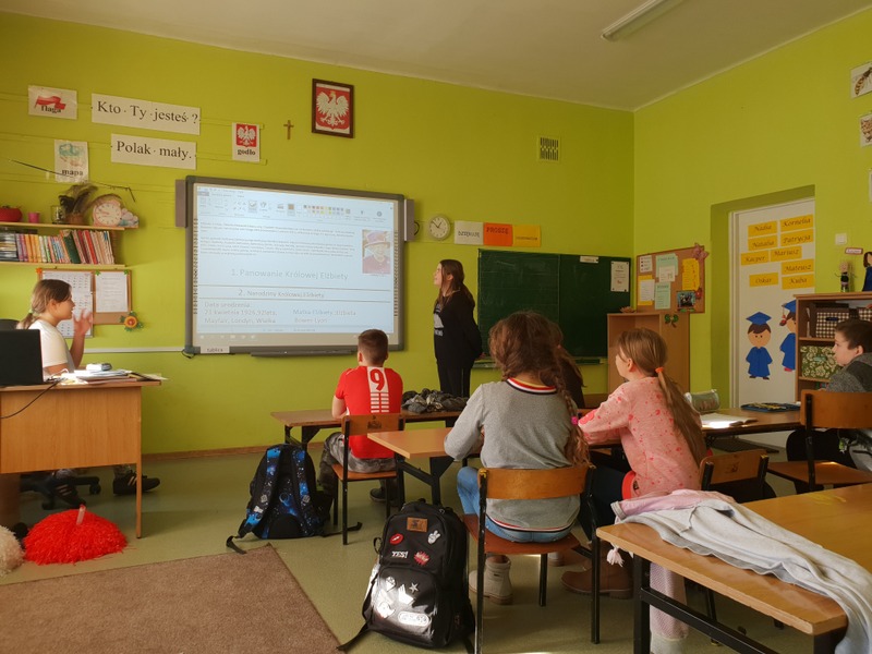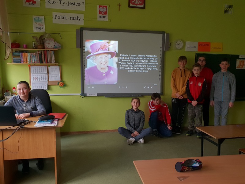 W marcu uczniowie klas IV-VIII przystąpili do konkursu wiedzy o Rodzinie Królewskiej, zorganizowanego przez nauczycielkę języka angielskiego – panią Katarzynę Marciniak. W ciągu kilku dni przystąpili do różnorodnych zadań, tworzyli drzewa genealogiczne Rodziny Królewskiej, szukali różnych ciekawostek związanych z Jej Wysokością Królową Elżbietą II oraz tworzyli prezentacje multimedialne. Zwieńczeniem całego konkursu był test o Rodzinie Królewskiej, dlatego uczniowie z wielkim zaangażowaniem i radością zdobywali wszelkie informacje, a wszystko po to, by uzyskać jak najwięcej punktów, ponieważ główną nagrodą było napisanie listu w imieniu całej społeczności szkolnej do królowej Elżbiety II. Test nie należał do najłatwiejszych, mimo to uczniowie byli świetnie przygotowani. Niestety wygrany mógł być tylko jeden. Pierwsze miejsce i zaszczyt napisania listu do królowej trafił do uczniów klasy VIII.