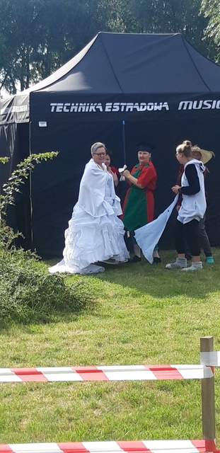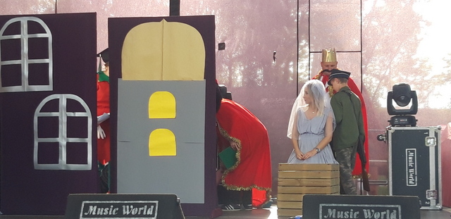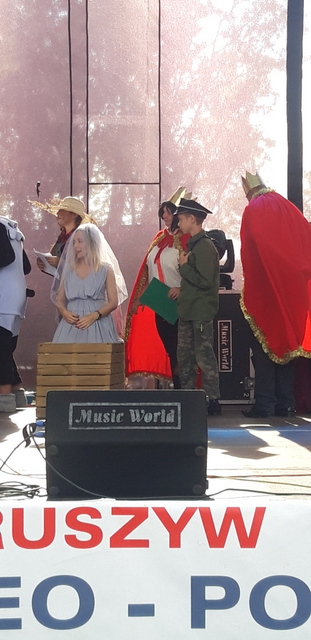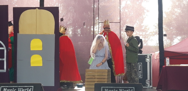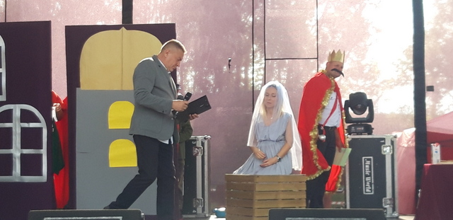 Tradycyjnie, jak co roku, nasza szkoła zaprezentowała się podczas FESTYNU NA ROZPOCZĘCIE LATA 2019 w Kościelcu. Specjalnie na tę uroczystość koło teatralne przygotowało przedstawienie „Książę szuka żony”. W upalne popołudnie 22 czerwca 2019 r. uczniowie, rodzice, nauczyciele i dyrektor szkoły zaprezentowali swoje umiejętności aktorskie na scenie kościeleckiego amfiteatru. Humorystyczny spektakl, ciekawe stroje i kolorowa dekoracja przyciągnęły przed scenę wielką grupę widzów. Na zakończenie występu pan Mirosław Zagozda /dyrektor szkoły/ podziękował wszystkim za szczególny wkład w przygotowanie przedstawienia. Wręczył również dyplomy i medale za zaangażowanie w prace na rzecz szkoły rodzicom – Julicie i Krzysztofowi Łopatom /ich córka skończyła w tym roku szkolnym naukę w klasie VIII/.