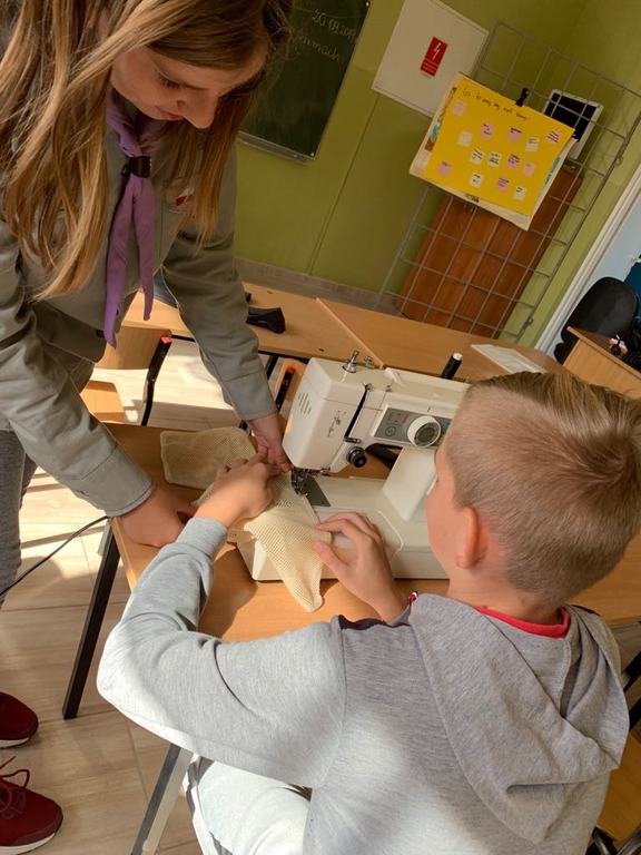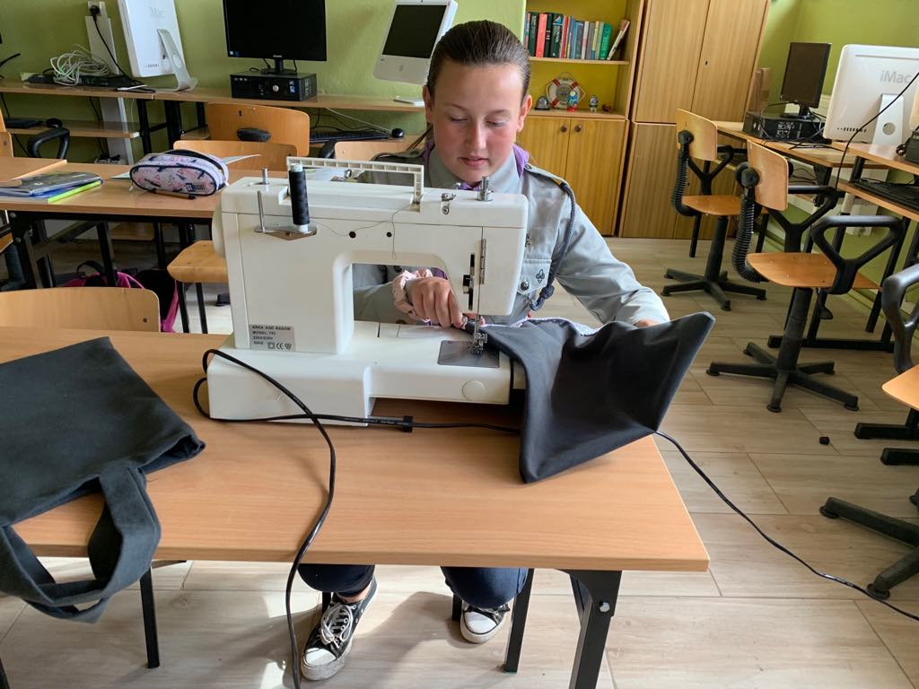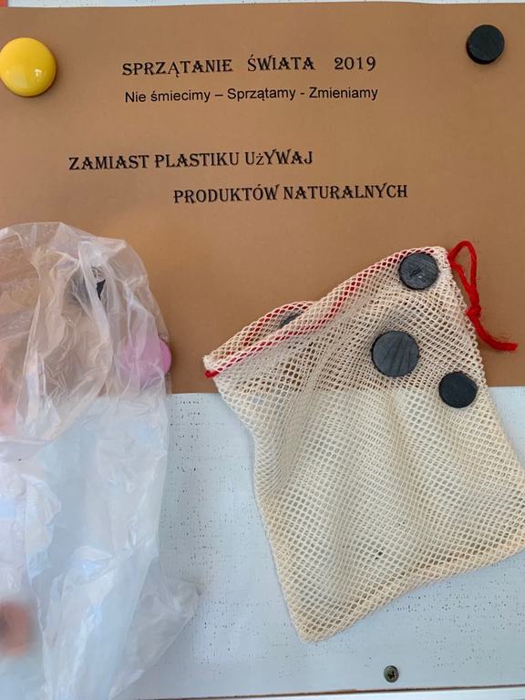 Włączając się w akcję sprzątania świata, w myśl tegorocznego hasła,Nie śmiecimy-Sprzątamy- Zmieniamy”, postanowiliśmy wykonać i zareklamować torebki wielokrotnego użytku. Wykonaliśmy małe torebki z siatki bawełnianej na produkty kupowane w sklepach luzem oraz duże torby na zakupy. Nowym doświadczeniem stała się nauka szycia na maszynie, co okazało się wcale nie takie proste. Mimo wszystko efekt końcowy nie był wcale taki zły.