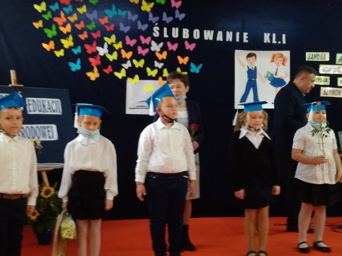 W dniu 14 X 2020 r. w naszej szkole odbyło się ślubowanie dzieci z klasy I i Dzień Edukacji Narodowej. Ze względu na pandemię w uroczystości wzięli tylko udział: pierwszoklasiści i ich rodzice. dyrektor szkoły, nauczyciele i przedstawiciele Samorządu Uczniowskiego.