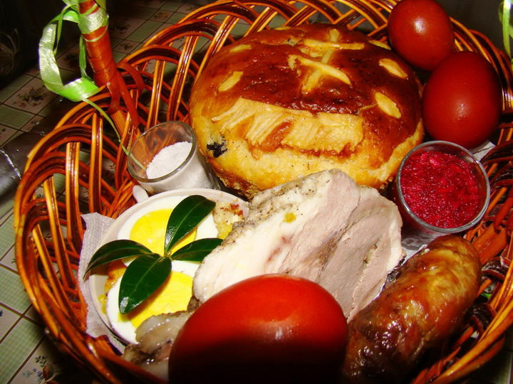 З суботи по неділю візьміть участь у традиційній Великодній службі. Вся служба триває до ранку, близько 4 ранку ми благословляємо кошики. У кошик має бути: паска / пас (традиційний пасхальний хліб), яйця / яйця, ковбаса / ковбаса, шинка / шинка, масло / масло, хрін / хрін, сіль / сіль, свічка / свічка.