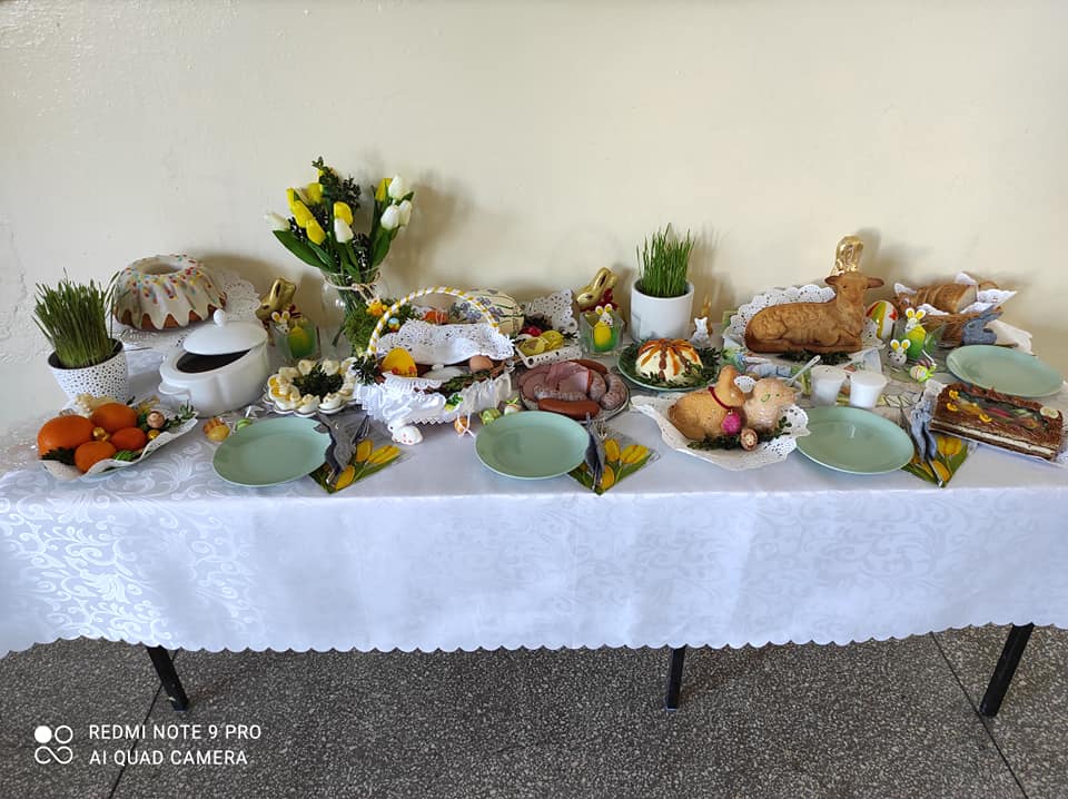 Propozycję takiego wielkanocnego stołu w naszej szkole przygotowały panie Iwona Brudnicka i Agata Ficner.