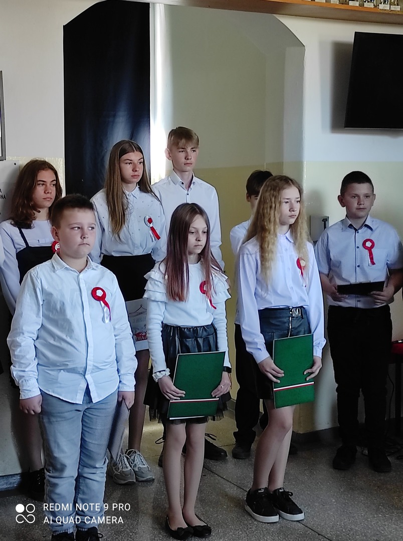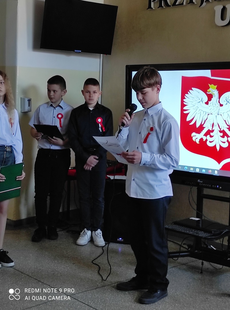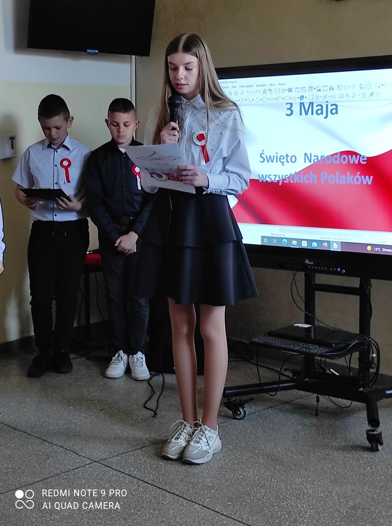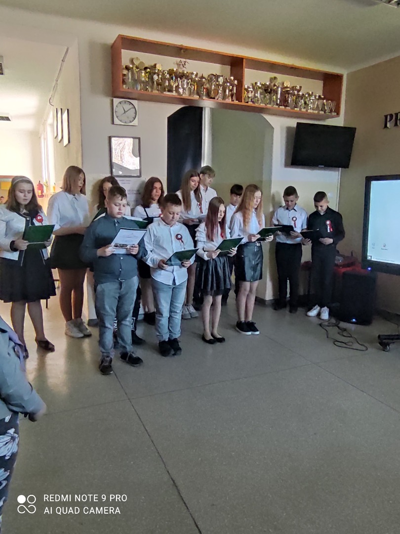 Dnia 29.04.2022r. o godzinie 10:50 miała miejsce w naszej szkole uroczysta akademia z okazji rocznicy Uchwalenia Konstytucji 3 Maja. Wzięli w niej udział uczniowie z klasy IV i VIII. Uczennice z klasy VIII przygotowały prezentację multimedialną . Uczniowie klasy IV i VIII wspólnie śpiewali okolicznościowe piosenki patriotyczne. Dowiedzieliśmy się też wiele na temat świąt towarzyszących, czyli o Dniu Flagi i Święcie Pracy. Uczniowie z naszej szkoły z zainteresowaniem wysłuchali akademii.