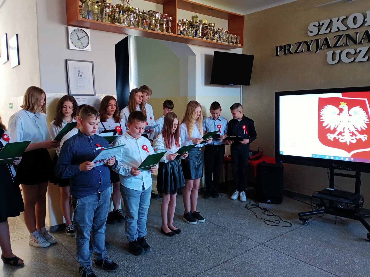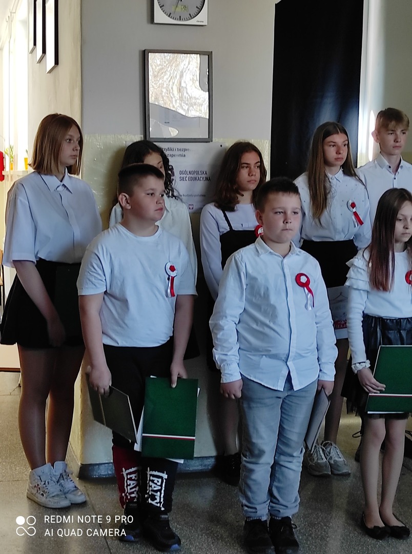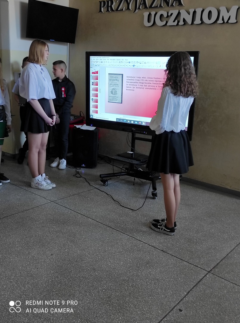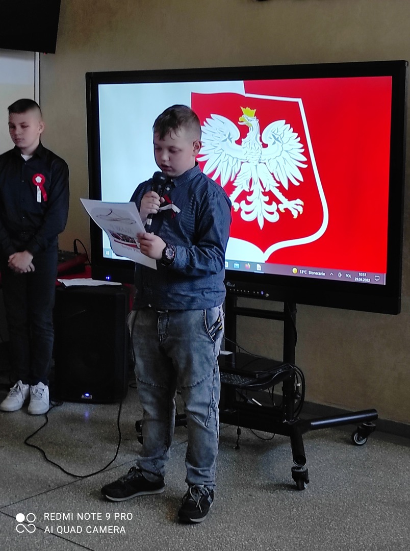 Dnia 29.04.2022r. o godzinie 10:50 miała miejsce w naszej szkole uroczysta akademia z okazji rocznicy Uchwalenia Konstytucji 3 Maja. Wzięli w niej udział uczniowie z klasy IV i VIII. Uczennice z klasy VIII przygotowały prezentację multimedialną . Uczniowie klasy IV i VIII wspólnie śpiewali okolicznościowe piosenki patriotyczne. Dowiedzieliśmy się też wiele na temat świąt towarzyszących, czyli o Dniu Flagi i Święcie Pracy. Uczniowie z naszej szkoły z zainteresowaniem wysłuchali akademii.